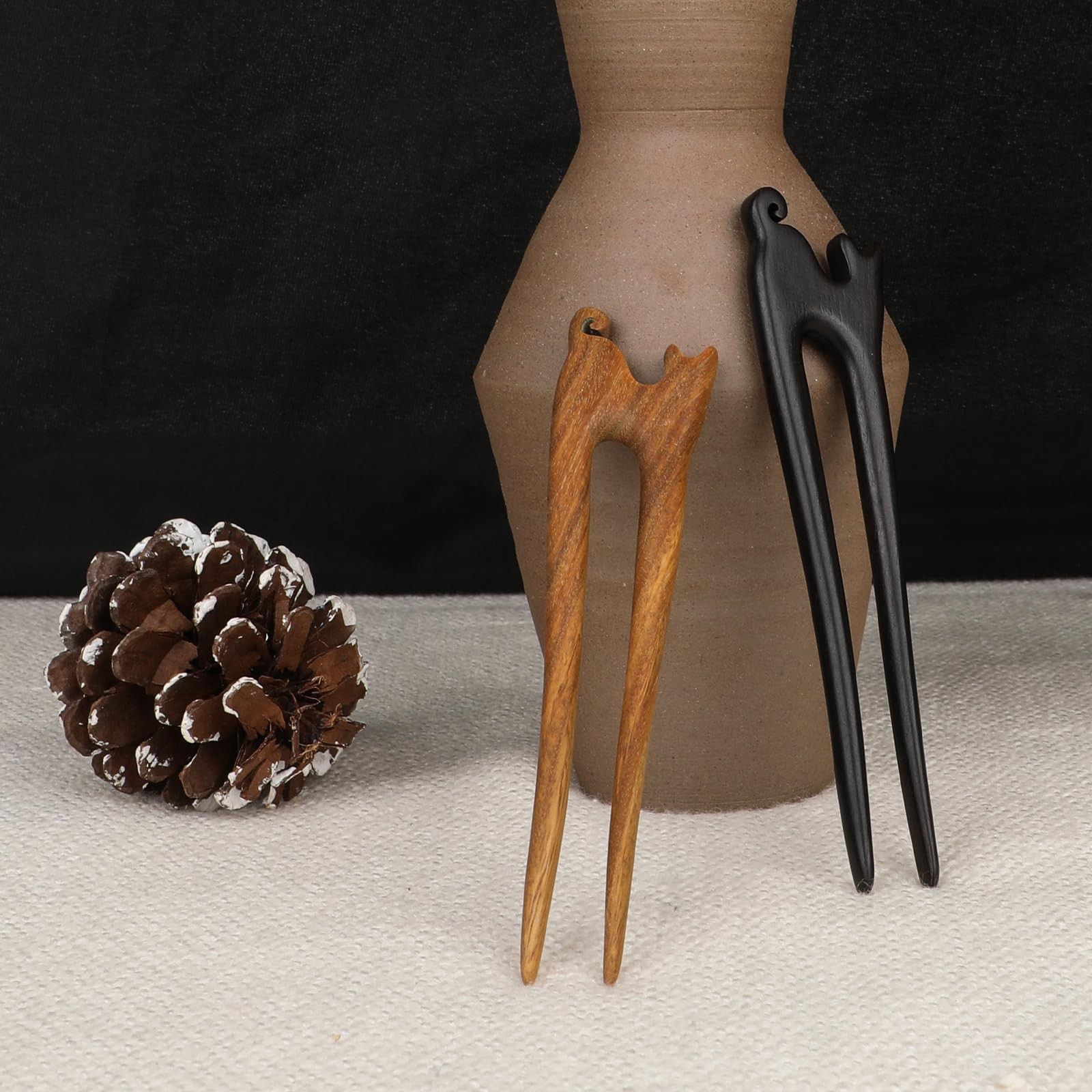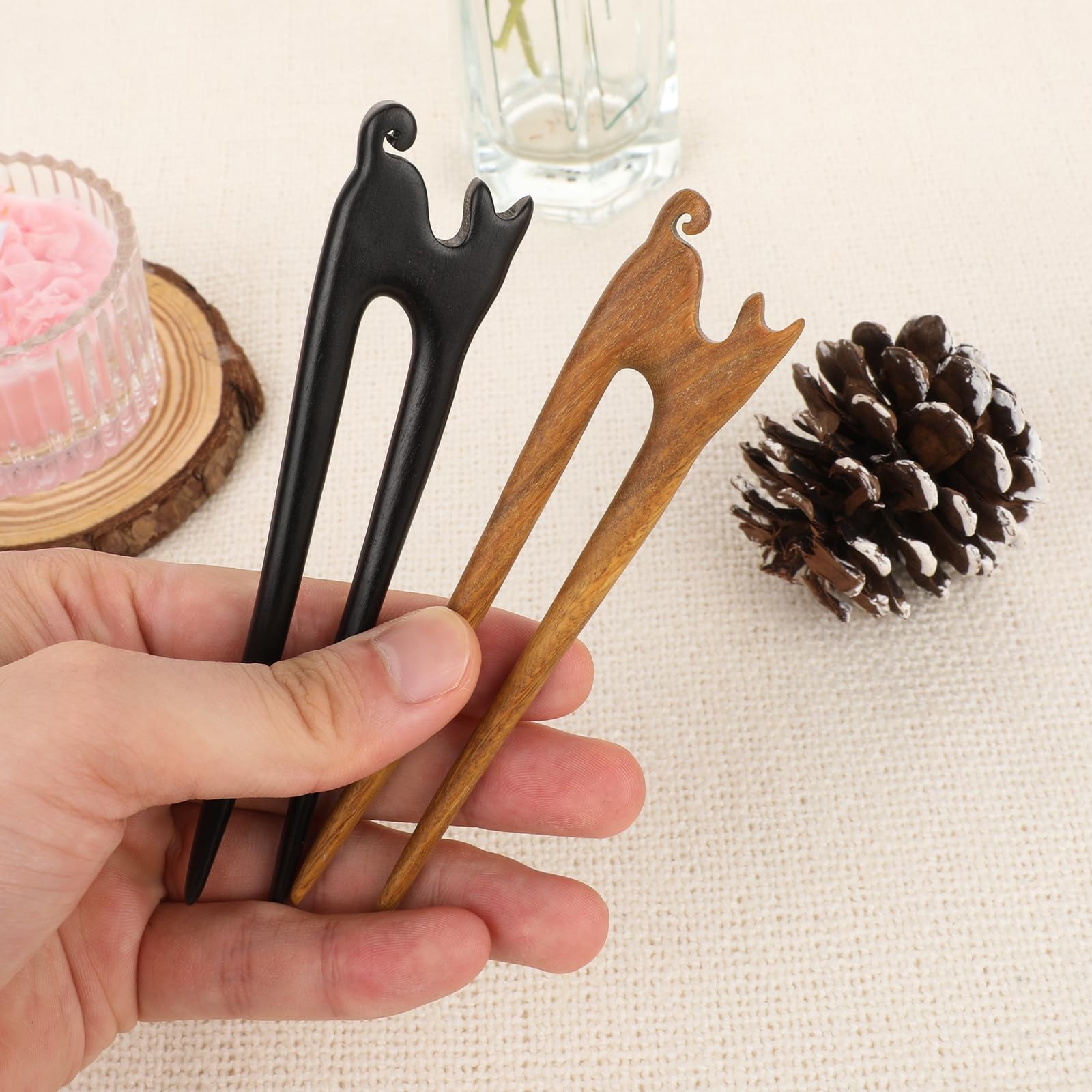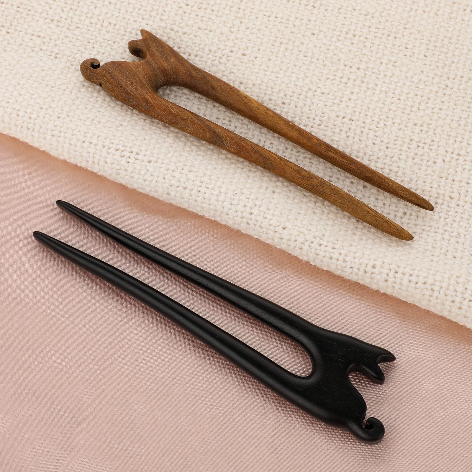 2Pcs U Shape Wooden Hair Sticks Handmade Carved Wood French Hair Forks with C...