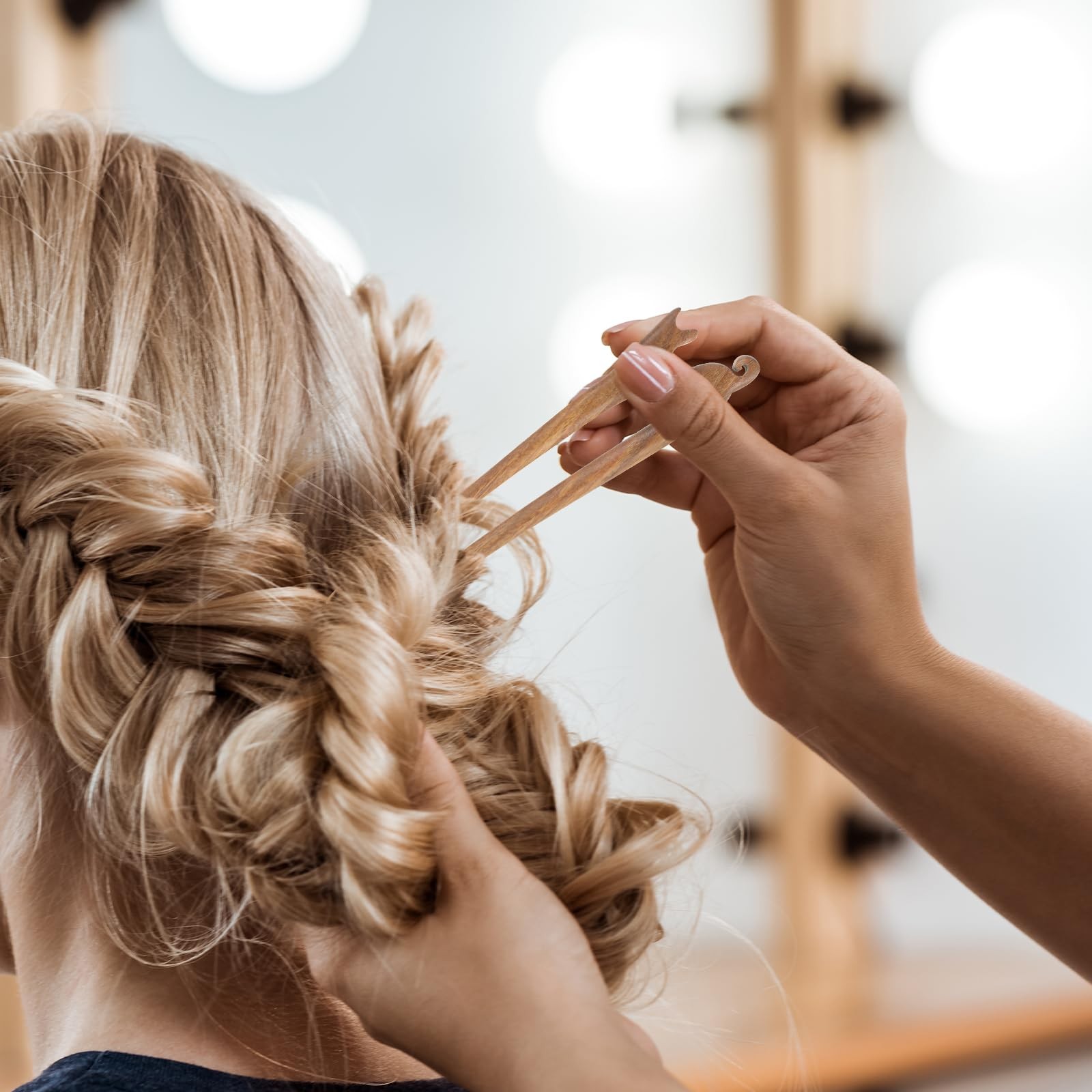 как выглядит 2Pcs U Shape Wooden Hair Sticks Handmade Carved Wood French Hair Forks with C... фото