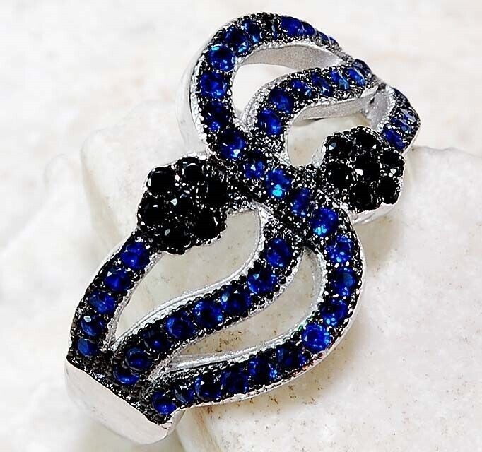 1CT Treated Blue Sapphire Sapphire 925 Sterling Silver Ring Sz 8 UB1-9