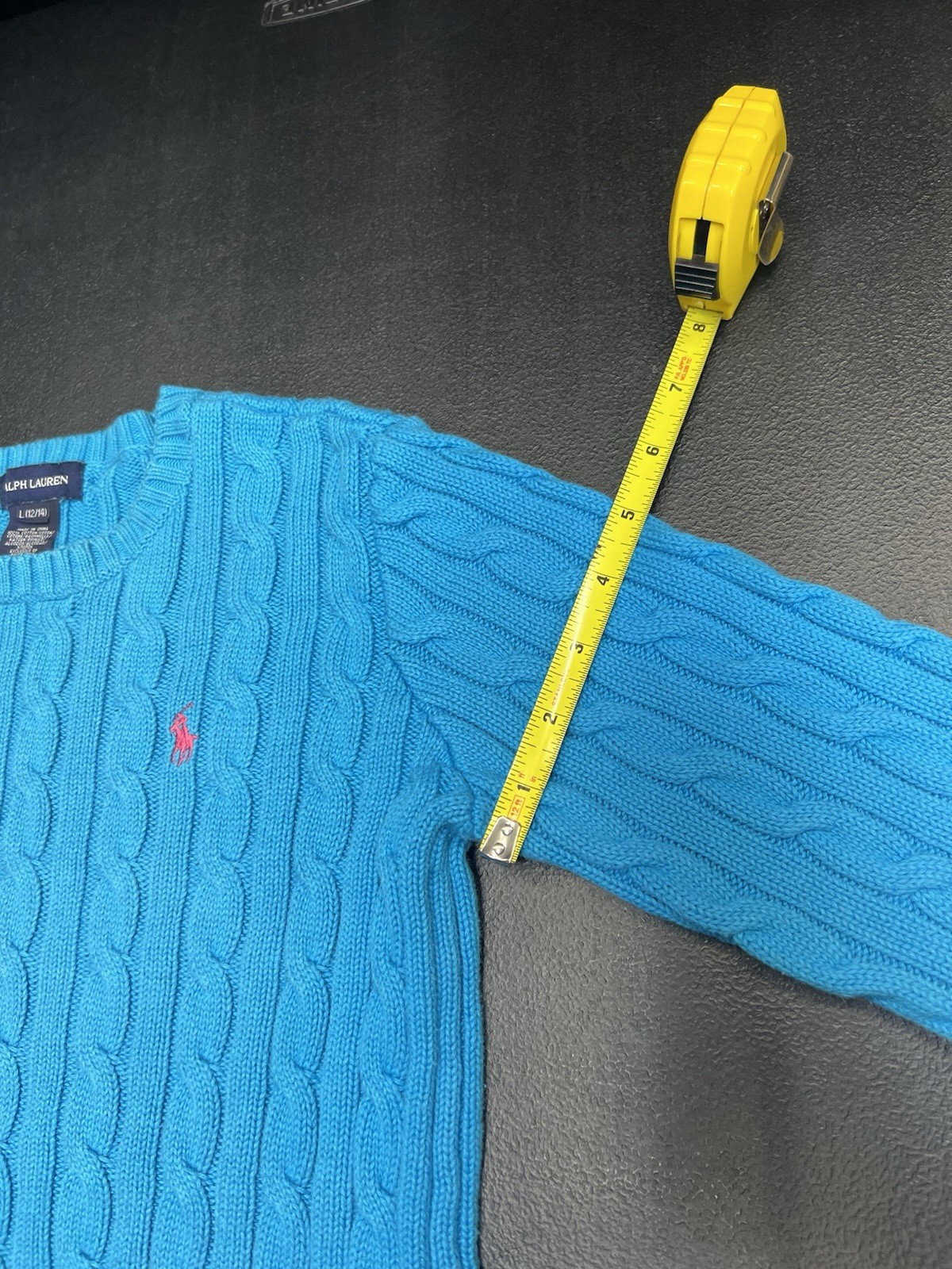 как выглядит Ralph Lauren Cable Knit Sweater Blue Cotton Crewneck Girls L 12/14 фото