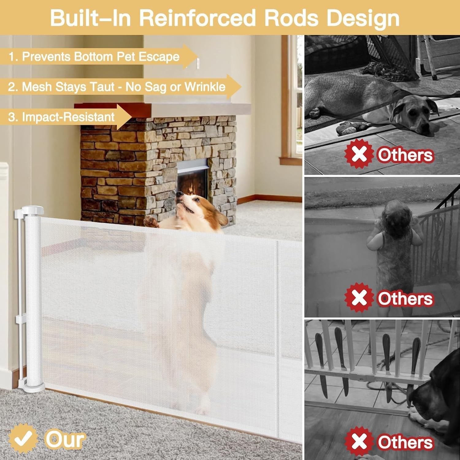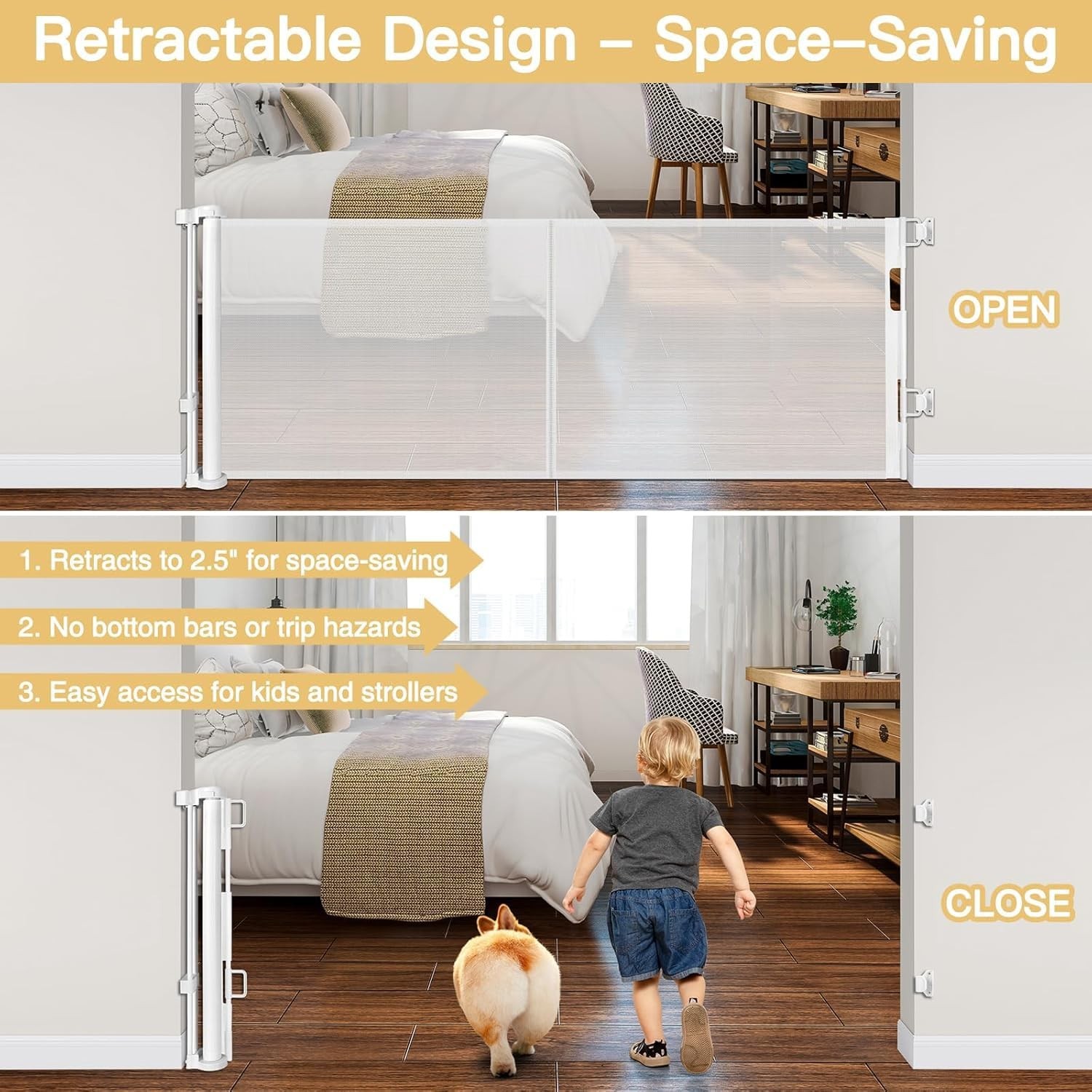Reinforced 28 Inch Tall Retractable Baby Gates for Dogs, Easy Step Over Pet Gate