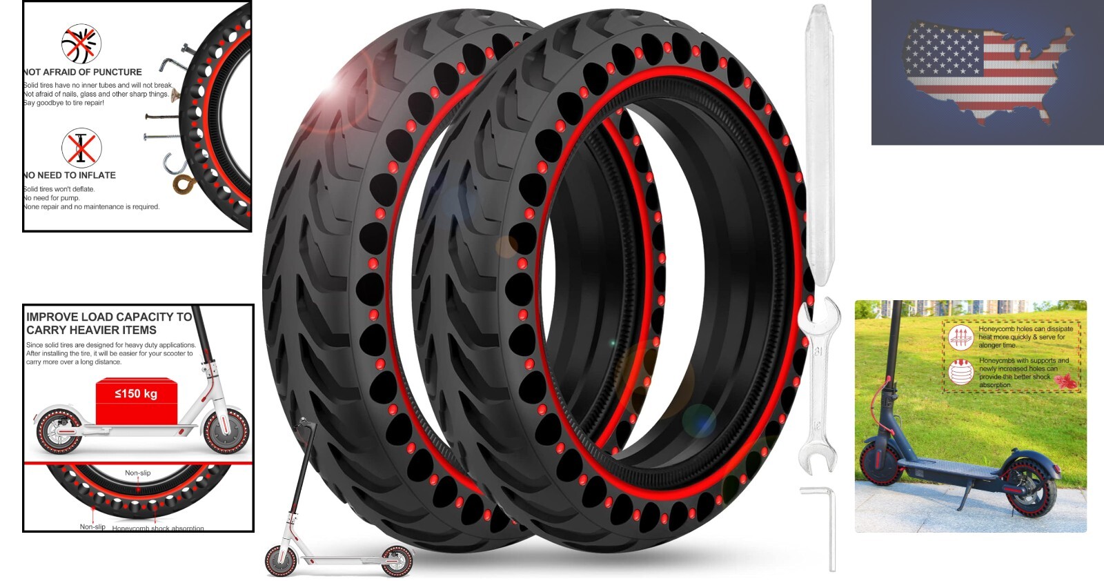 Durable 2PCS 8.5'' Solid Tires for Electric Scooter - Instant Flat-Free Riding