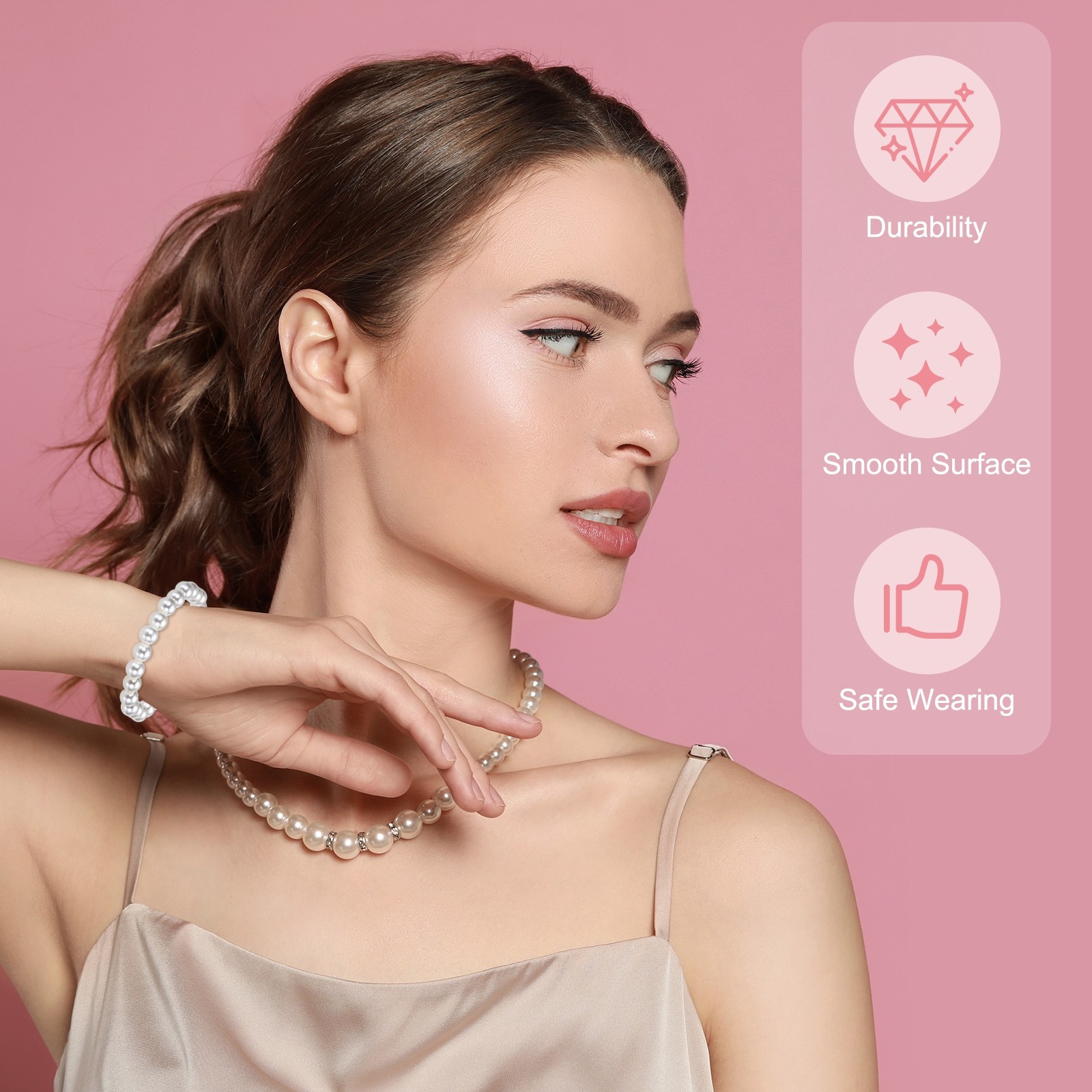 как выглядит 10 Pcs White Pearl Bracelets for Women, 12mm Pearl Stretch Bracelet, Beige фото