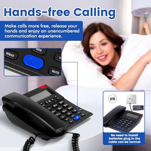 Corded Landline Phone with Caller ID, Speakerphone, Speed Dial Adjustable Ring