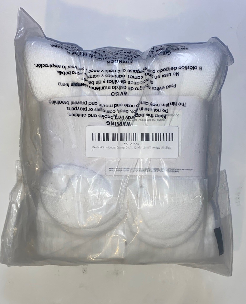 как выглядит AUTHENTIC Nike Kids Youth Everyday Crew Socks 6-PAIRS WHITE Size 5Y-7Y фото