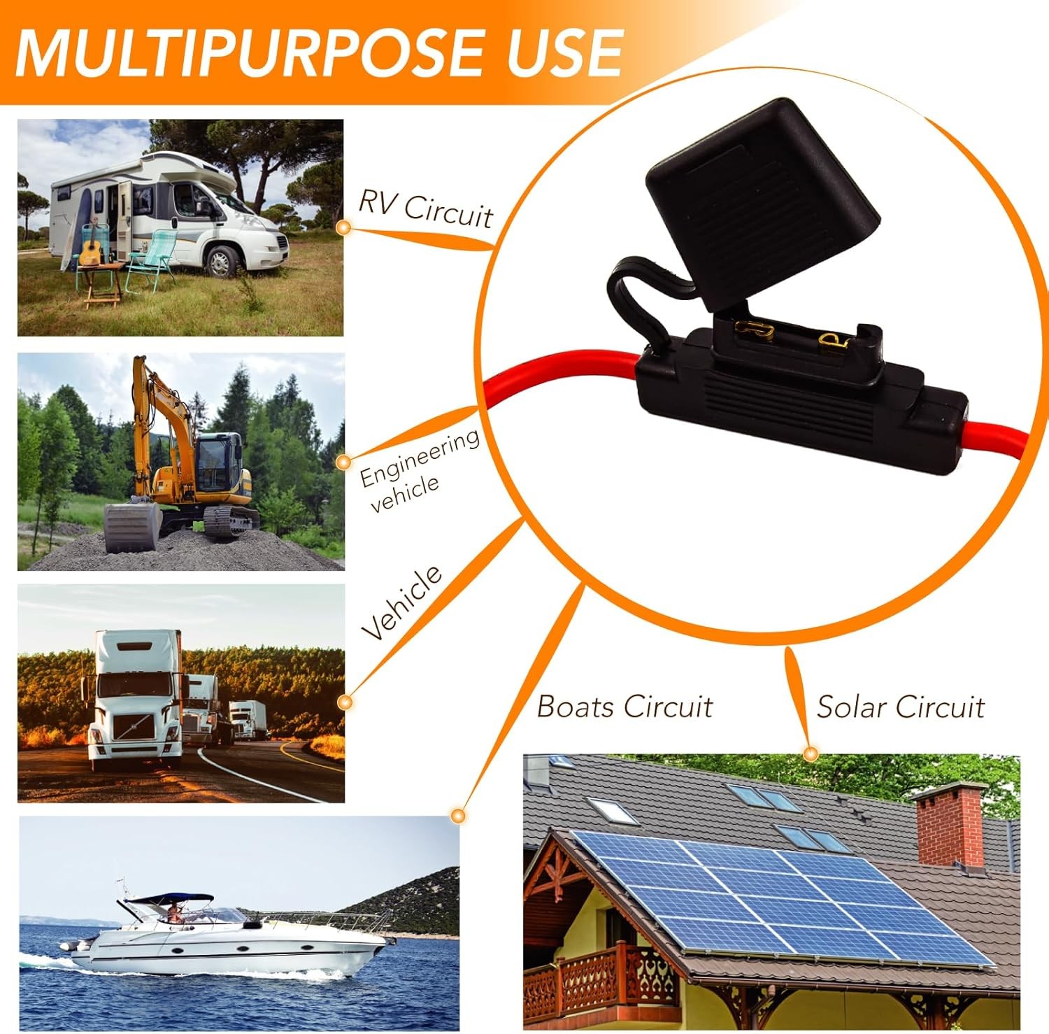 8 AWG Waterproof Heavy-Duty Maxi Inline Fuse Holder with 80A Maxi Fuse for Car A