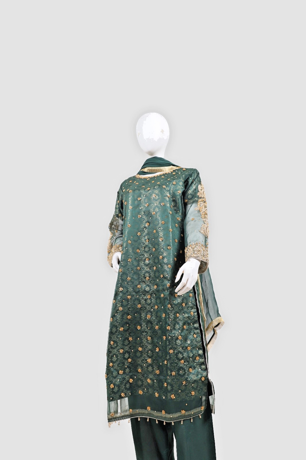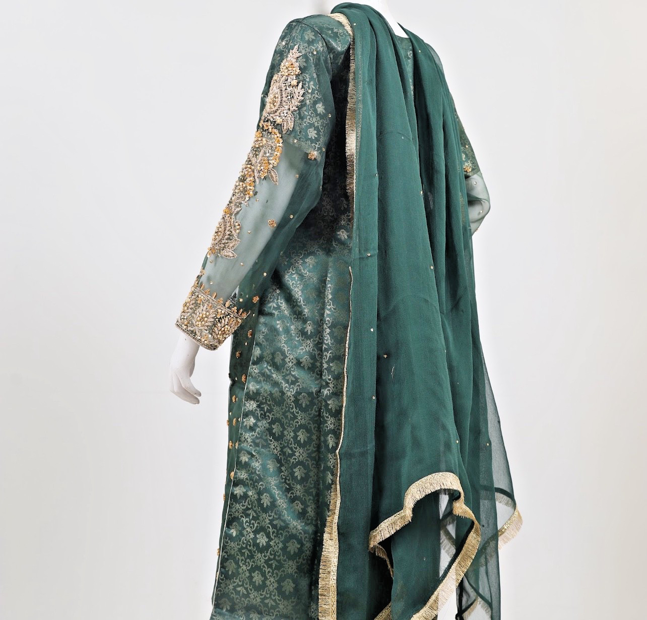 Pakistani/Indian Dark gGreen Golden Embroidered dress Eid/Party/Wedding wear.