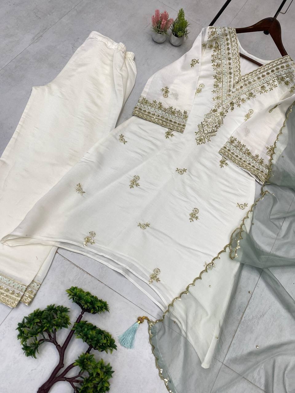 как выглядит Stunning Roman Silk White Top Palazzo With Dupatta For Women Festival Wear фото