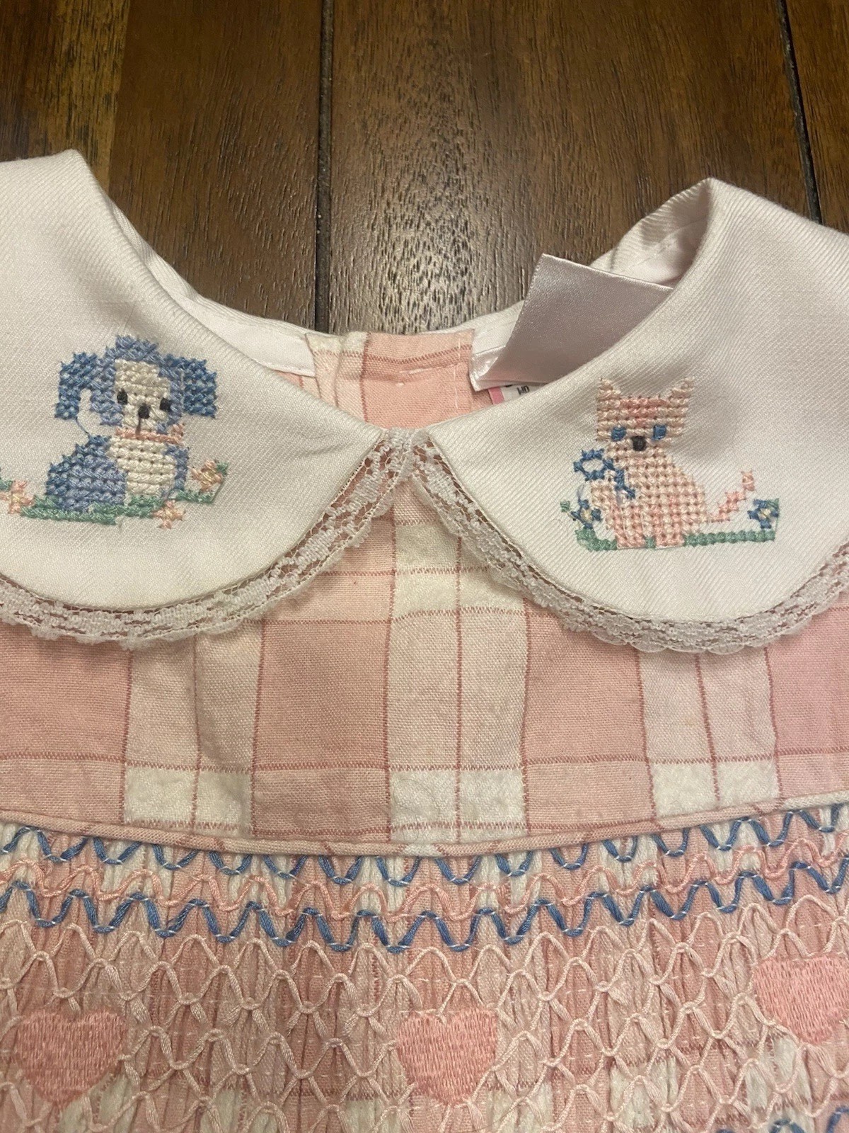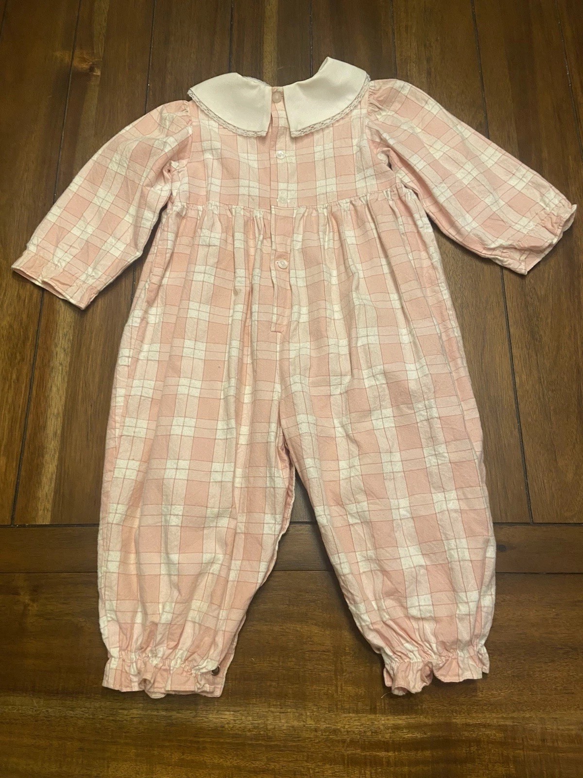 Vintage Baby Togs Smocked Toddler Girls Jumper Cross Stitch Pink Plaid Size 24M