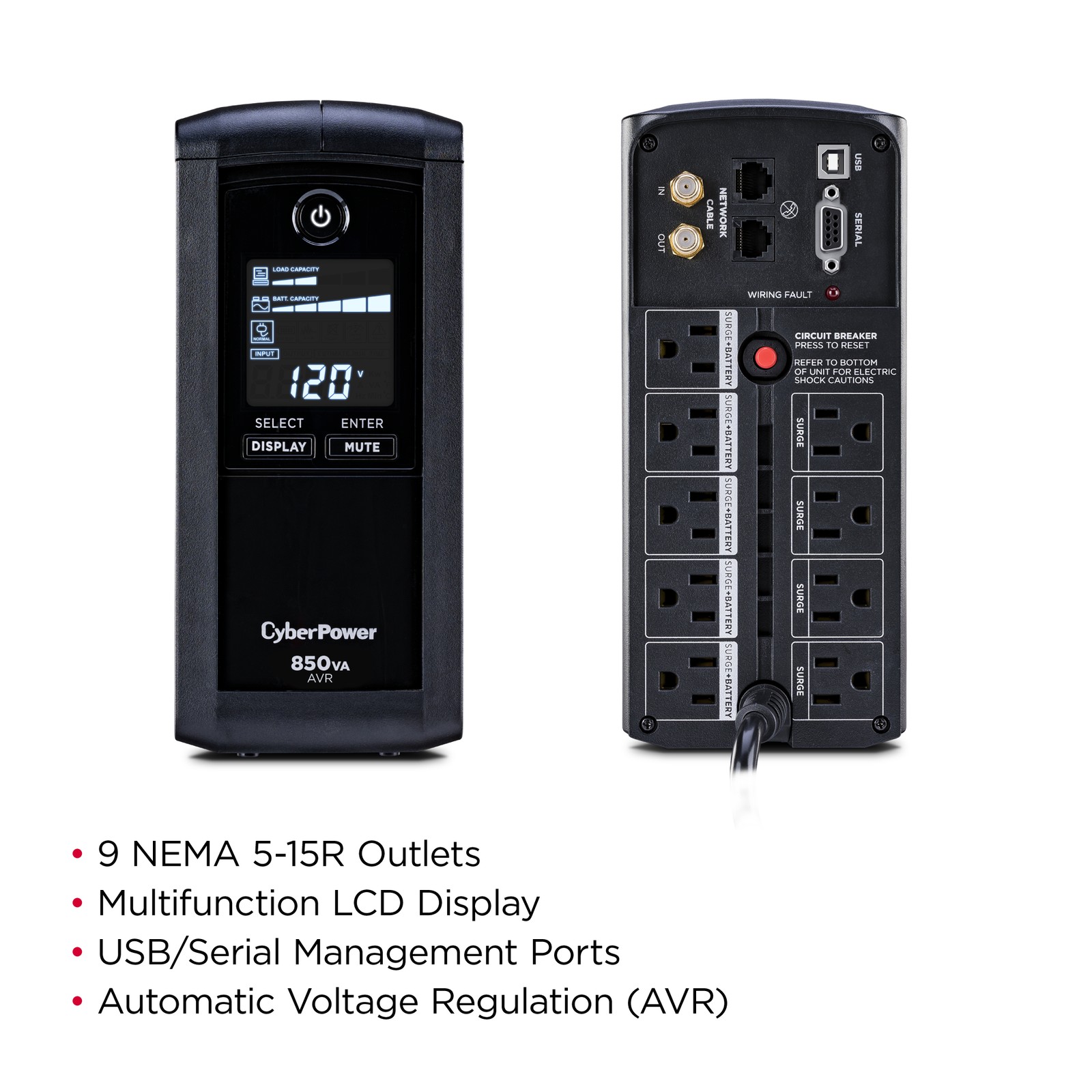 CyberPower CP850AVRLCD-R 850 VA 510 Watts 9 Outlets UPS - Certified Refurbished