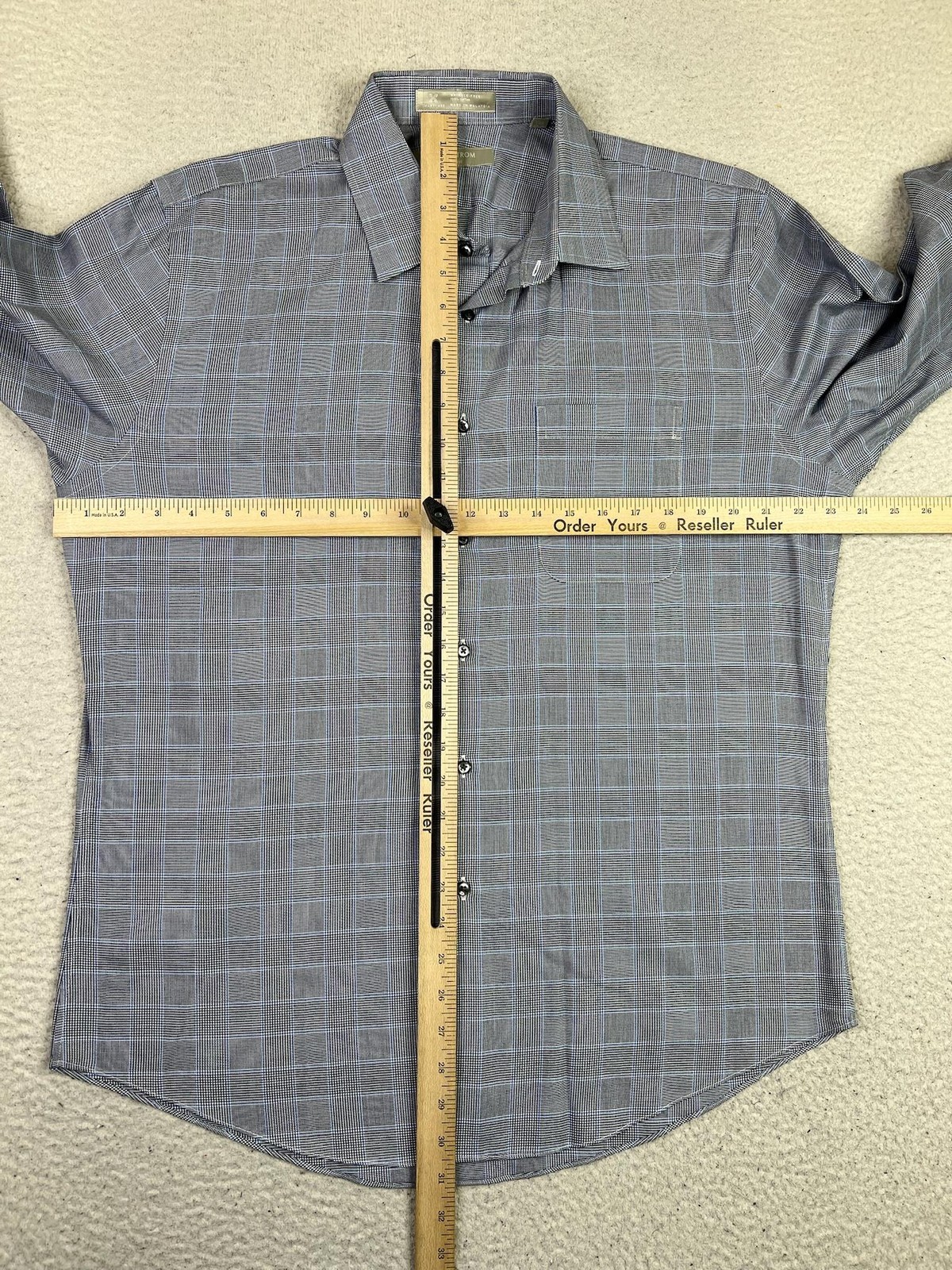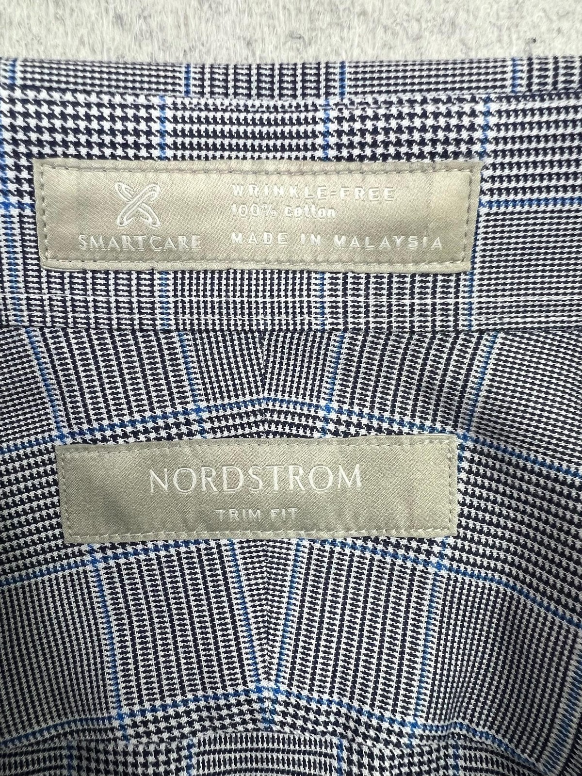 как выглядит Nordstrom Shirt Mens 16.5 32/33 Gray Plaid Trim Fit Smartcare Wrinkle Free LS фото