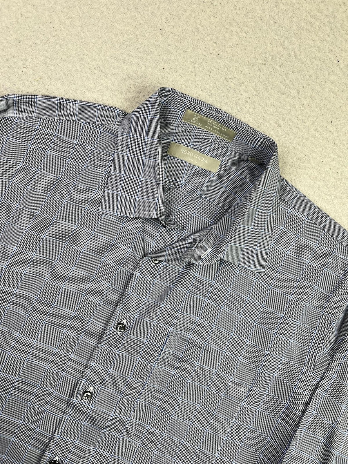 Nordstrom Shirt Mens 16.5 32/33 Gray Plaid Trim Fit Smartcare Wrinkle Free LS