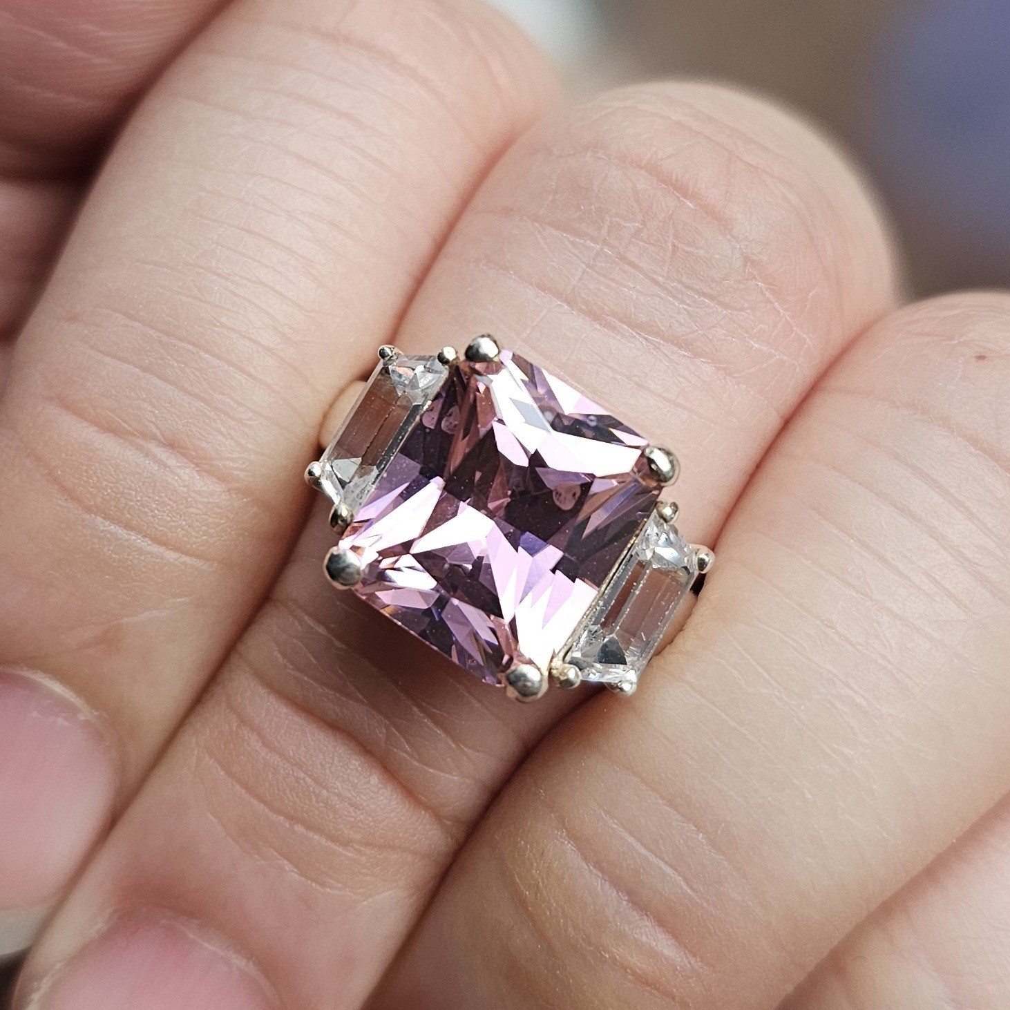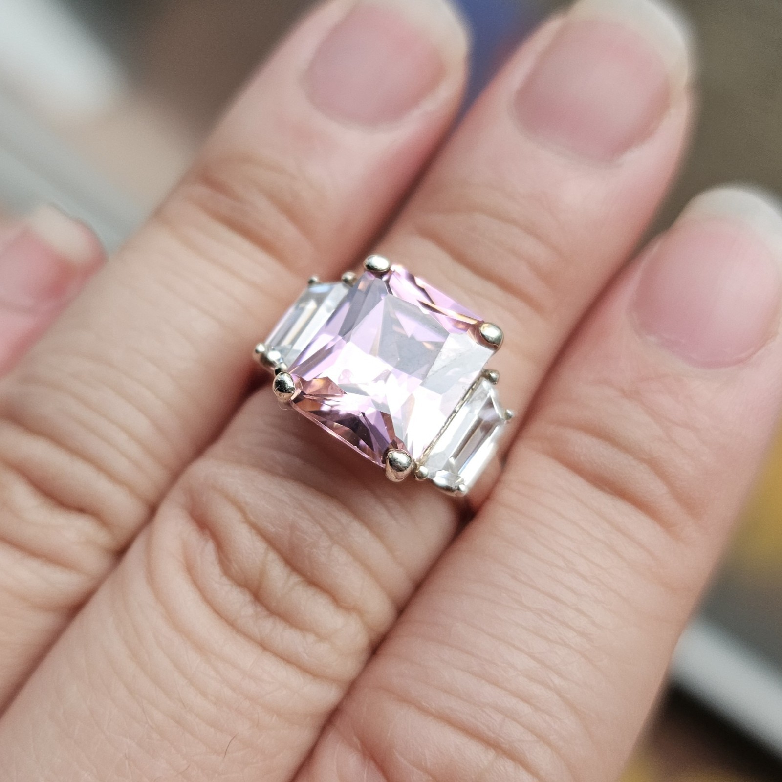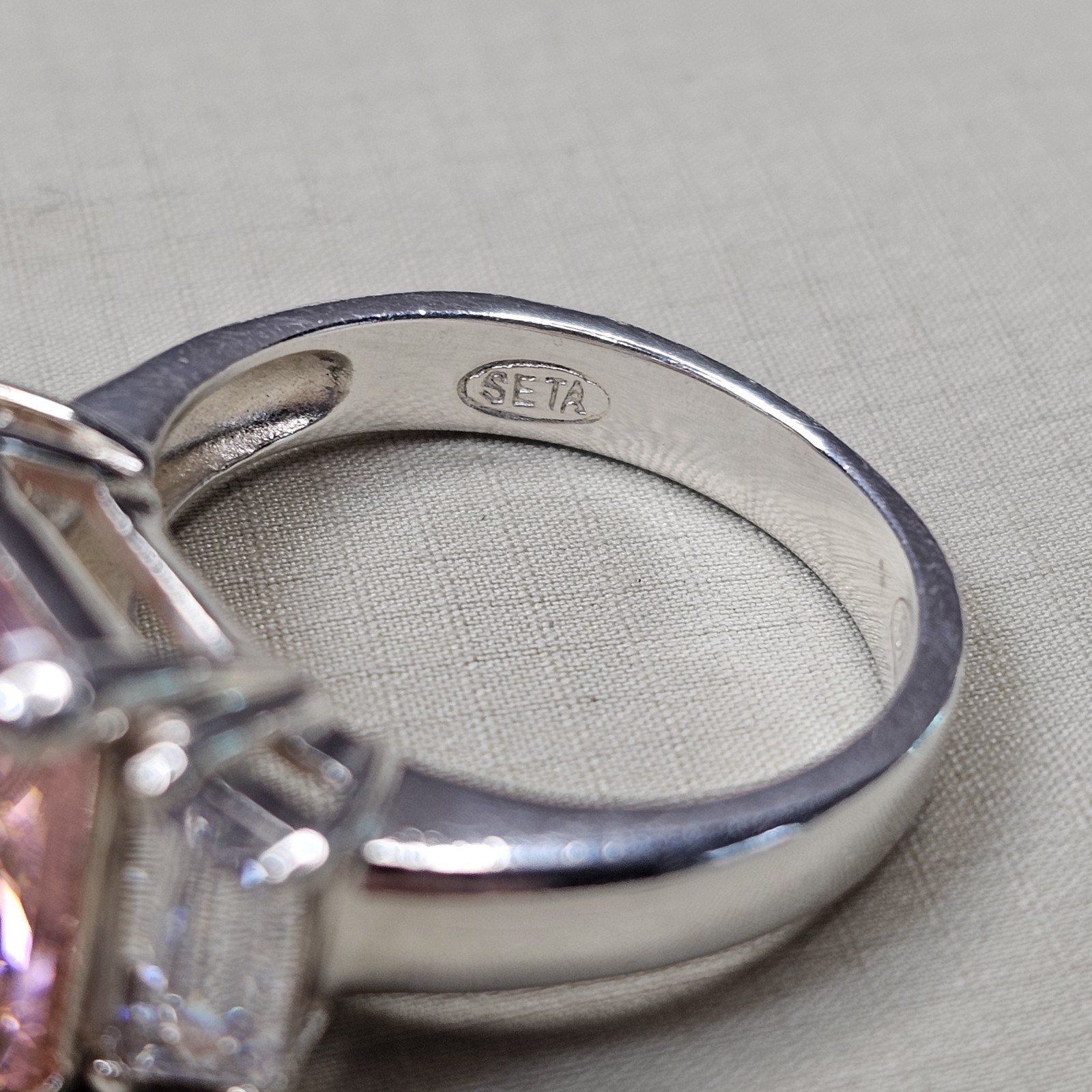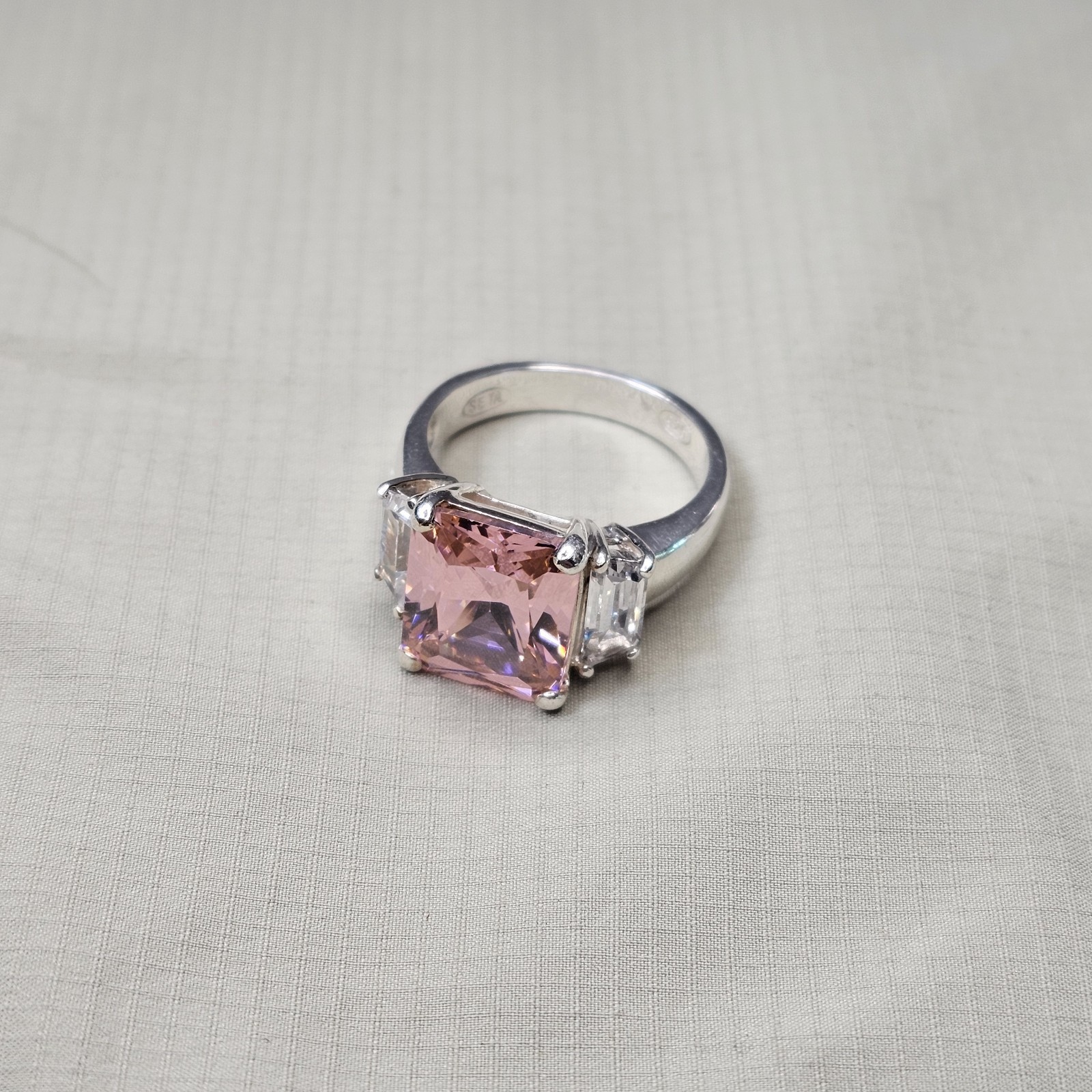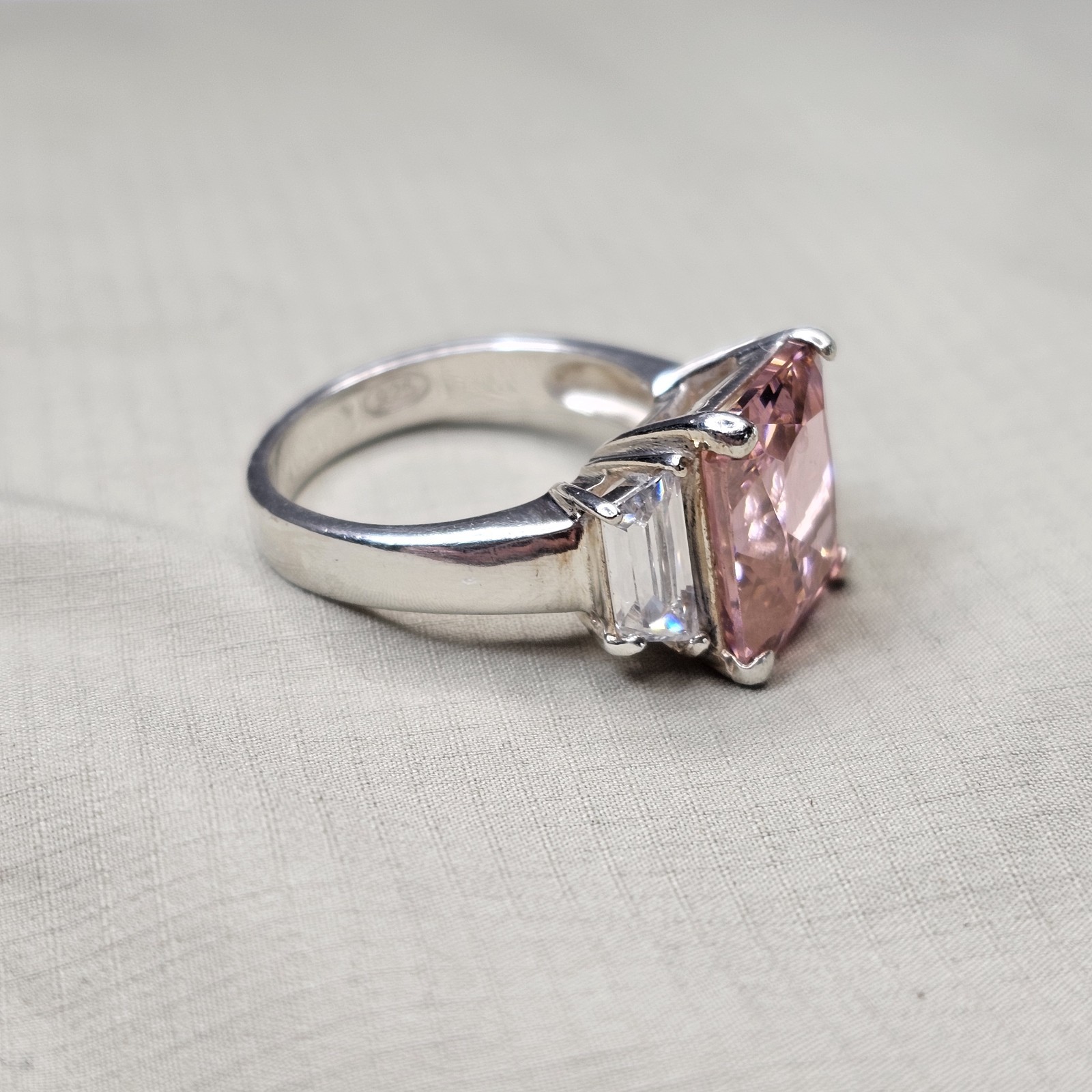 как выглядит 925 Sterling Silver Pink White Cubic Zirconia Statement Ring Size 7 - 6.74g фото