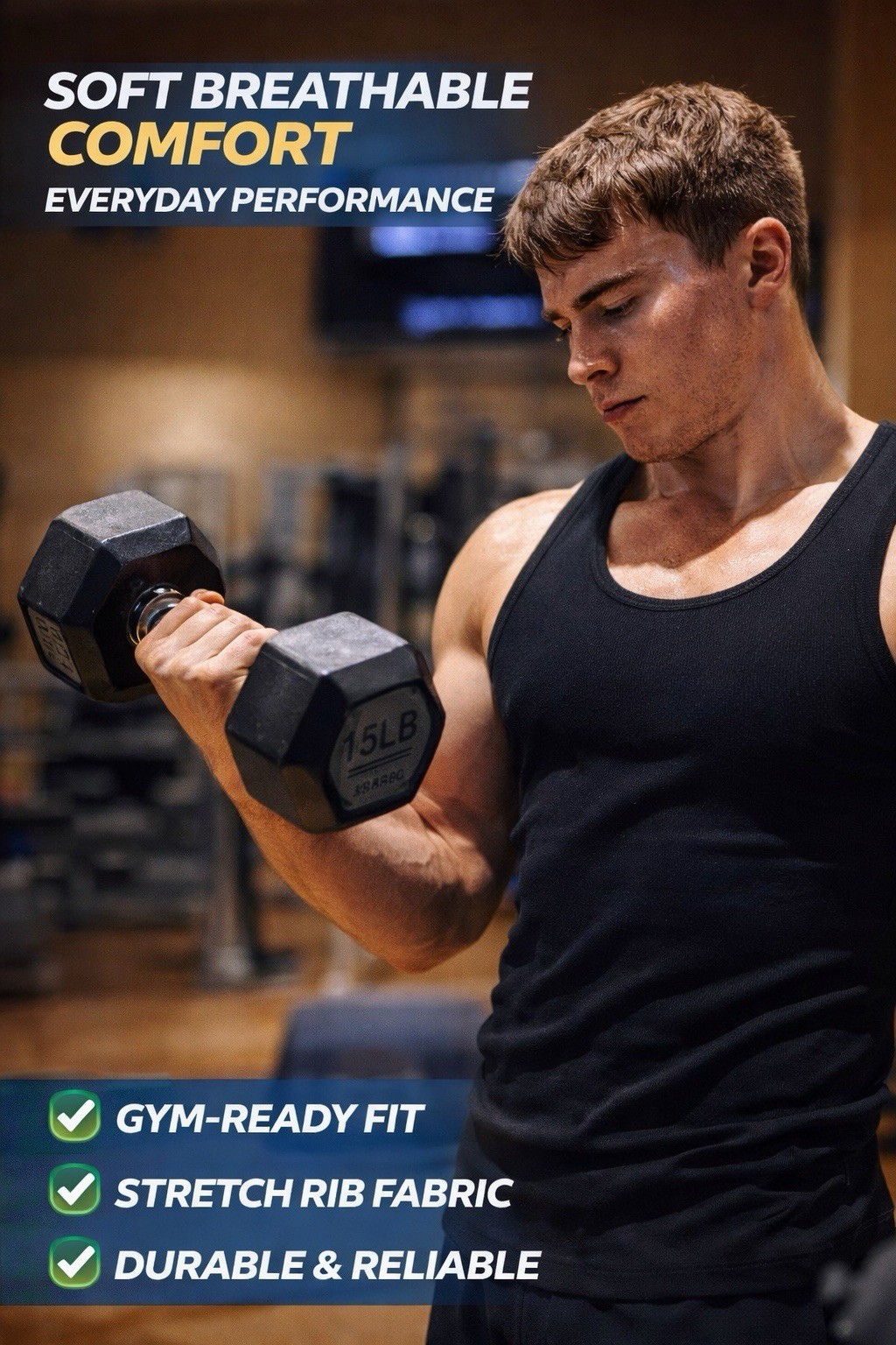 Men 100 Cotton Tank Tops Value 6-Pack Breathable Undershirts Gym Everyday Wear