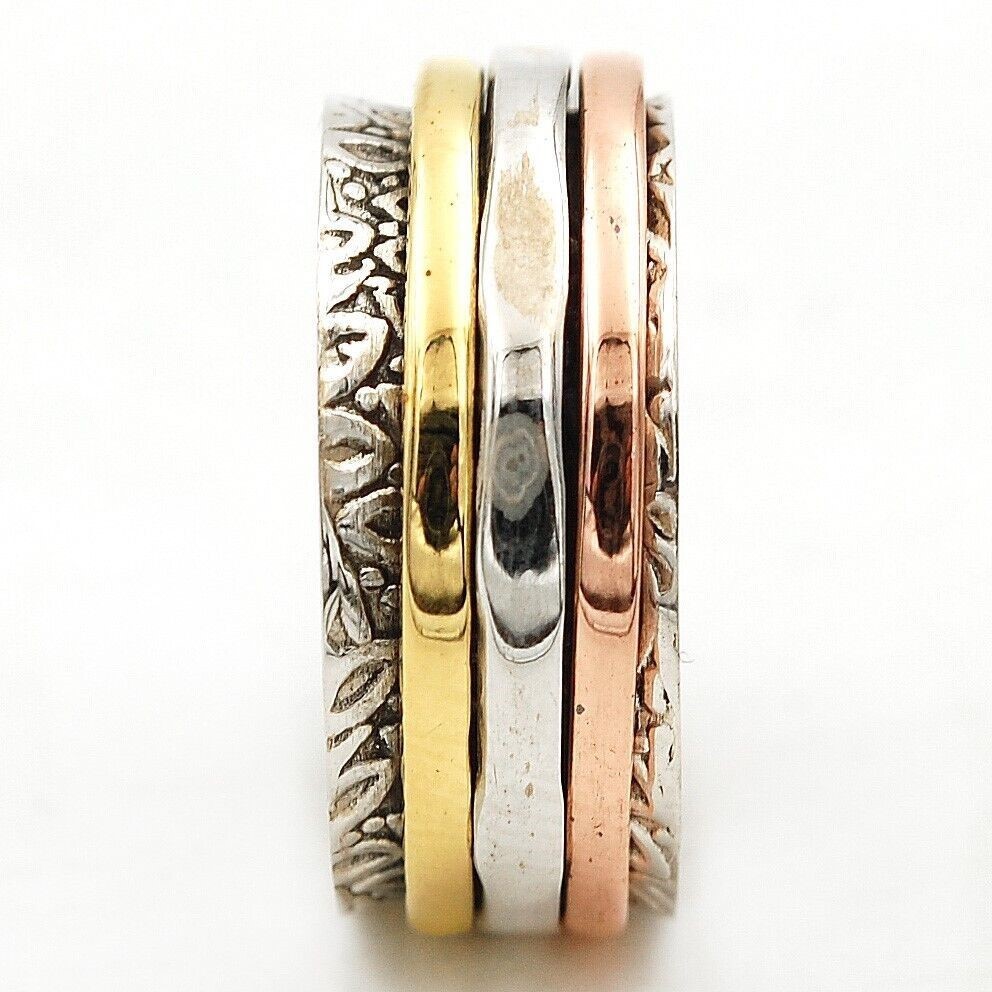Three Tone Meditation Spinner 925 Solid Sterling Silver Ring Sz 7 B19-6