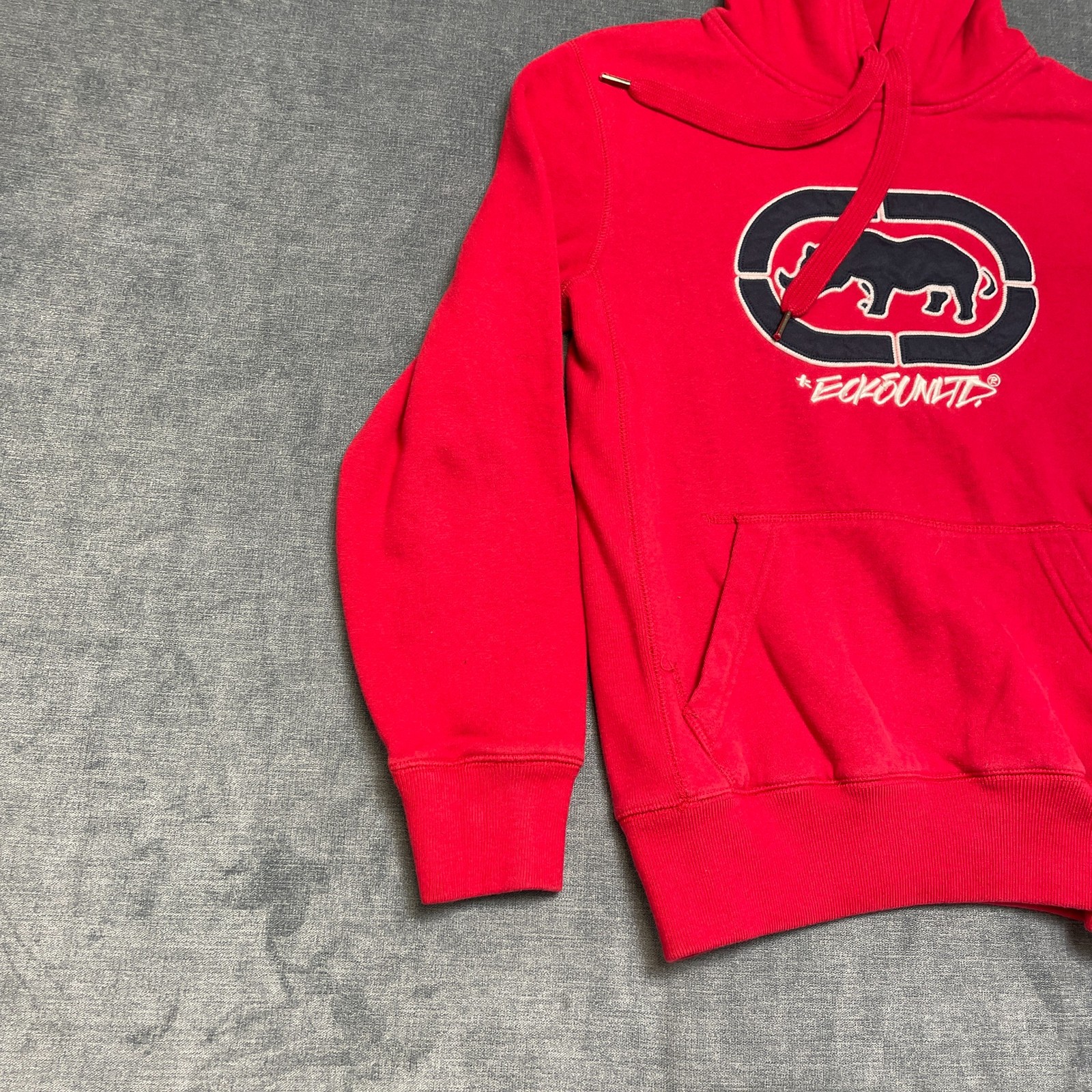 Y2K Ecko Unltd Hoodie Mens M Red Graphic Logo Long Sleeve Kangaroo Pocket
