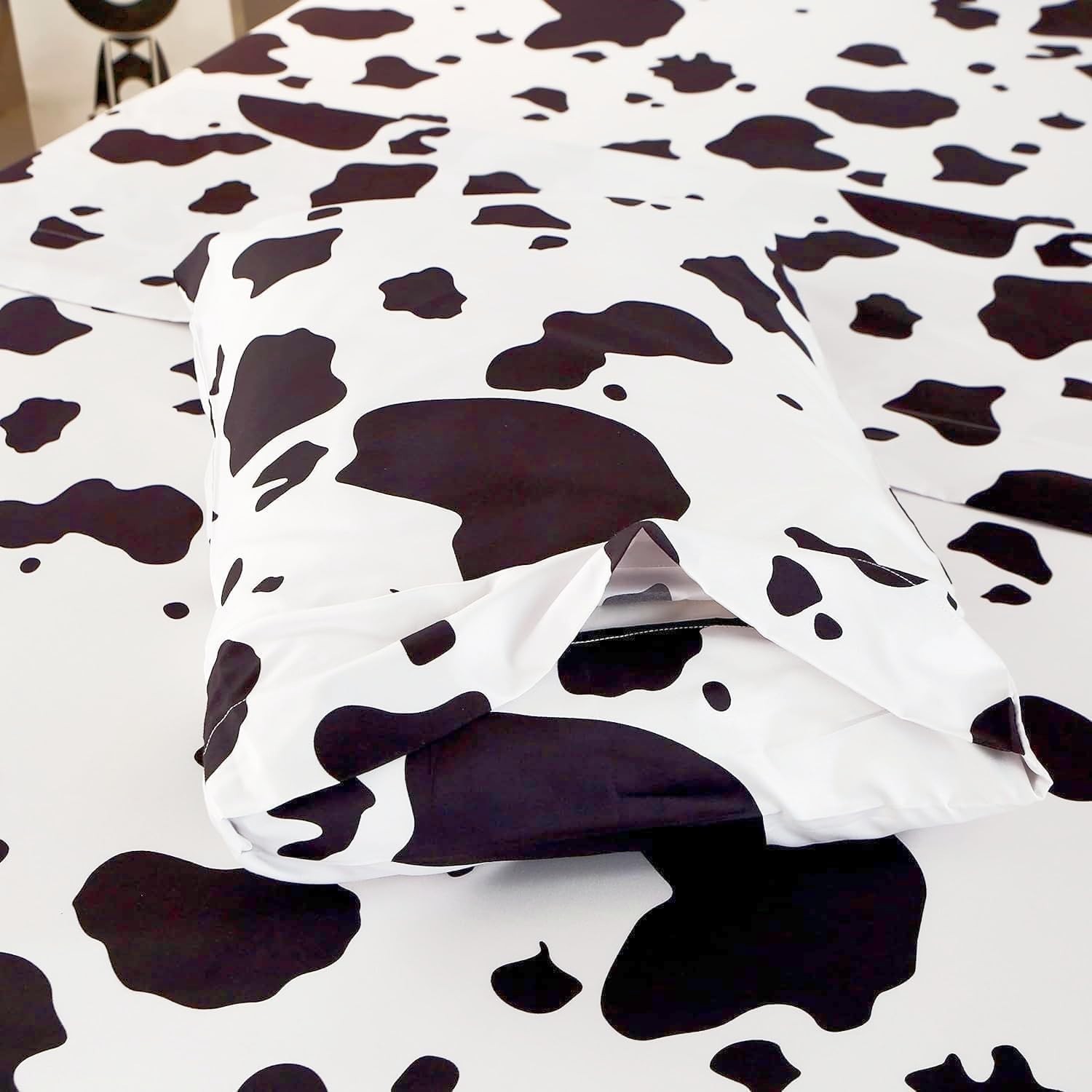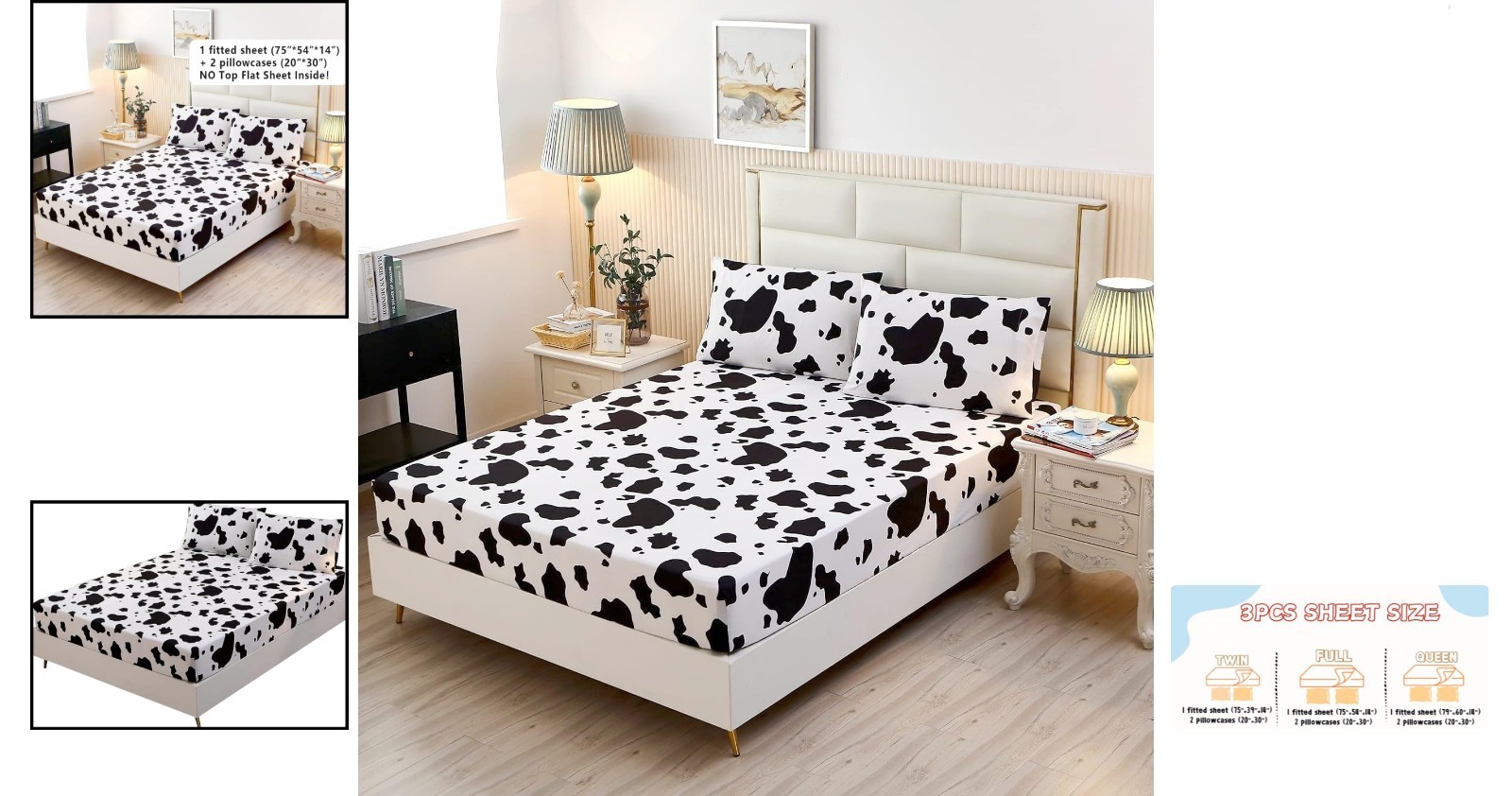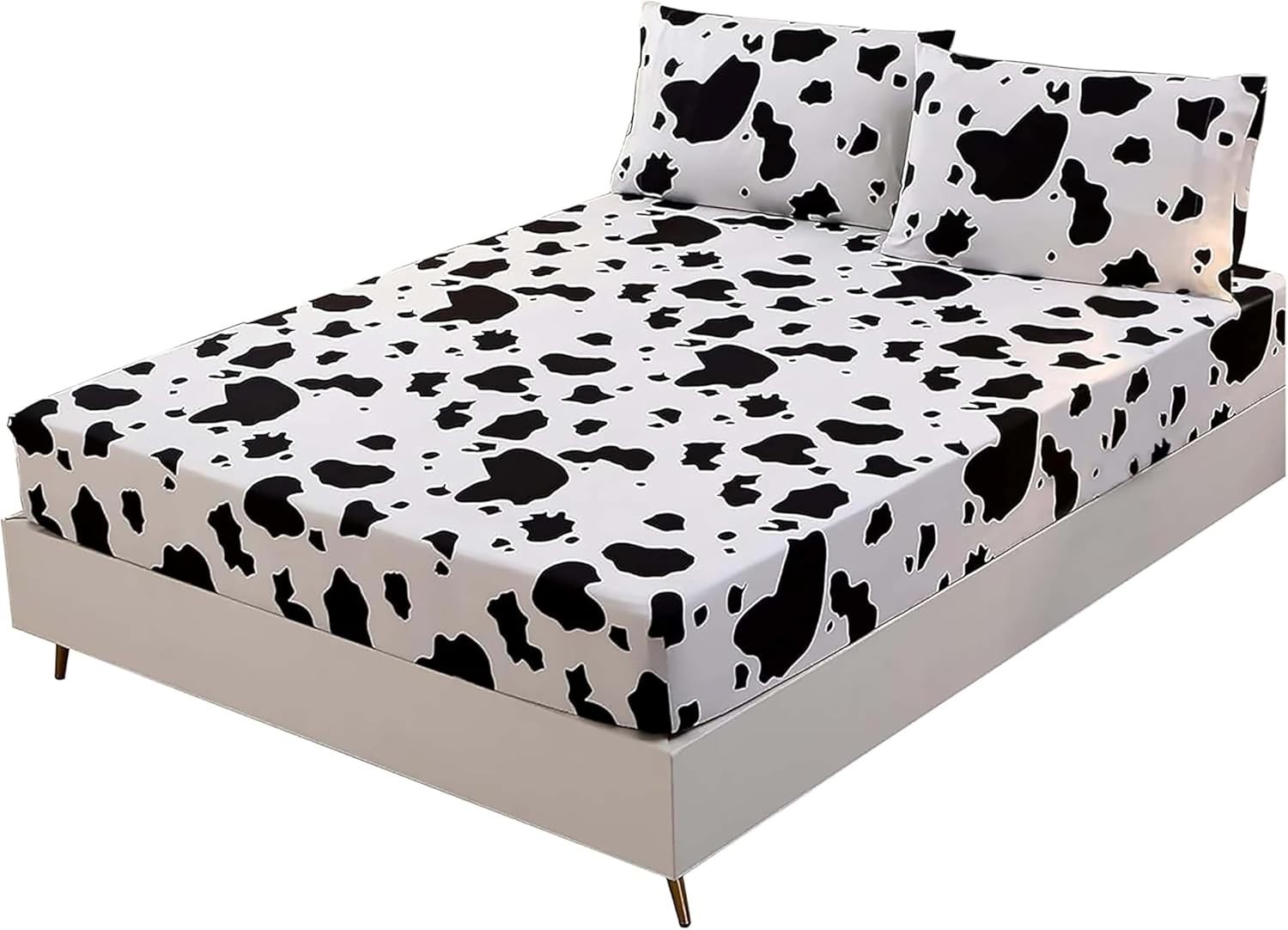 3PCS Milk Cow Print Stuff Bedding Fitted Sheet Set Twin Size, Cartoon Cow Pat...