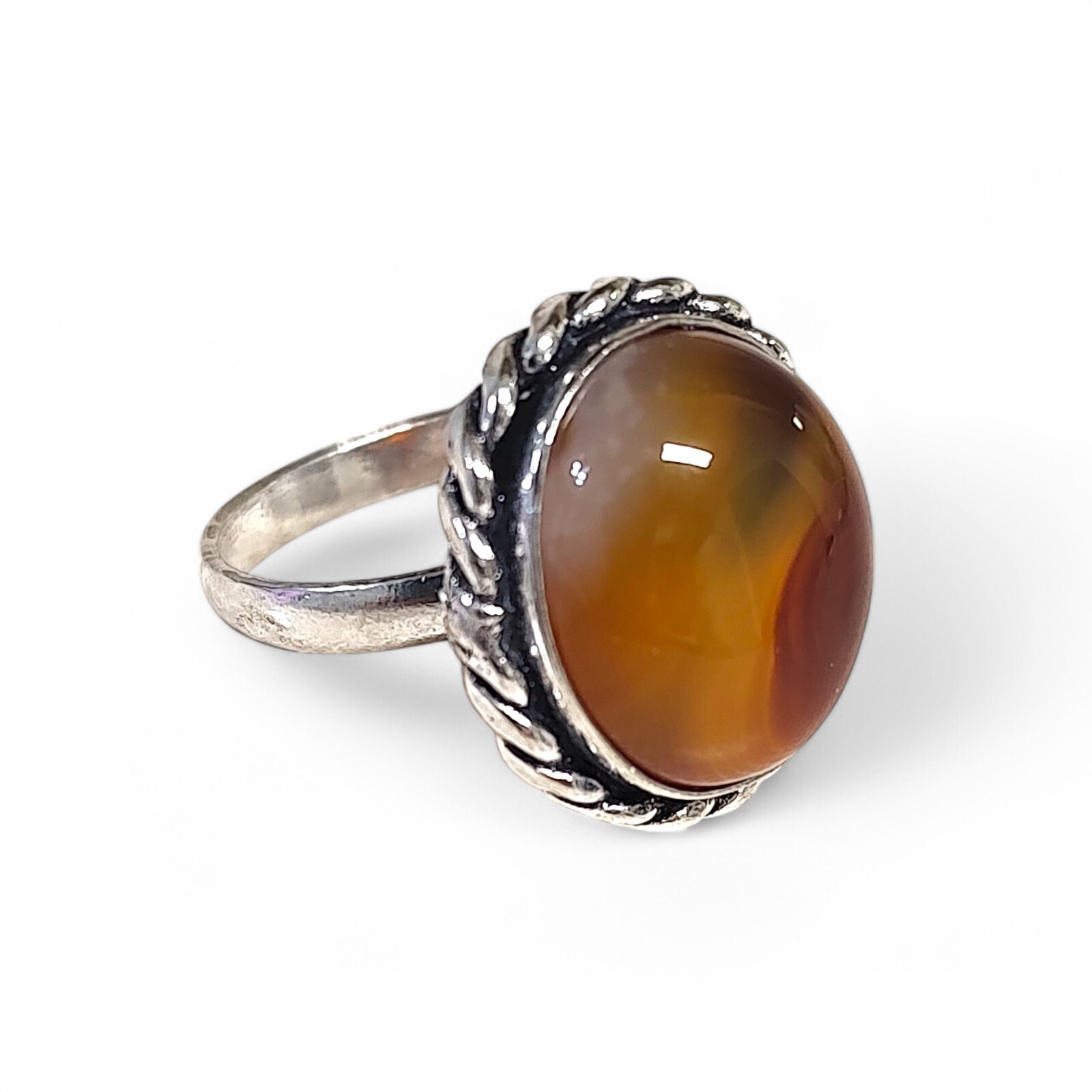 как выглядит Ladys Silver Tone Orange Banded Agate Ring Size 8.5 Ornate Handcrafted фото
