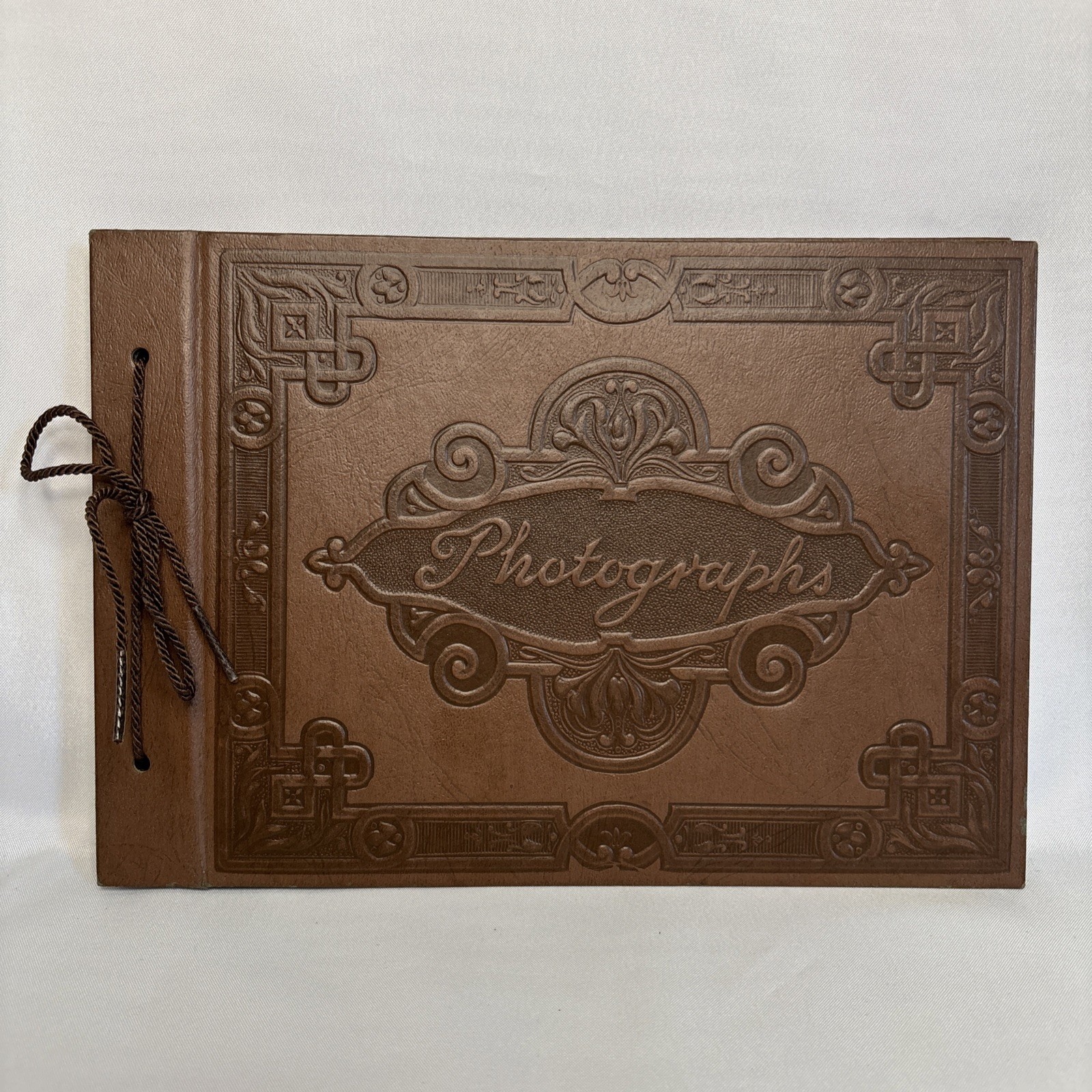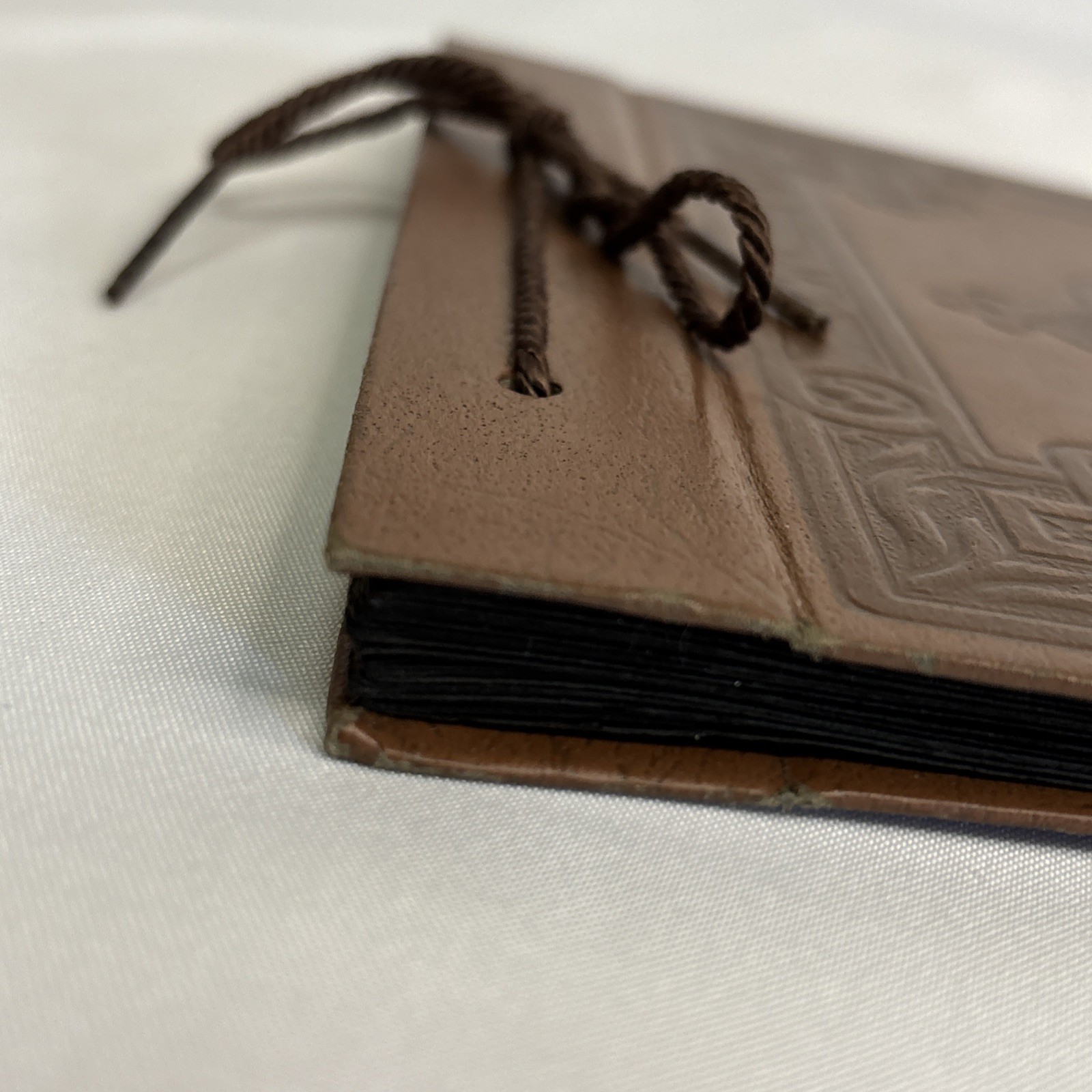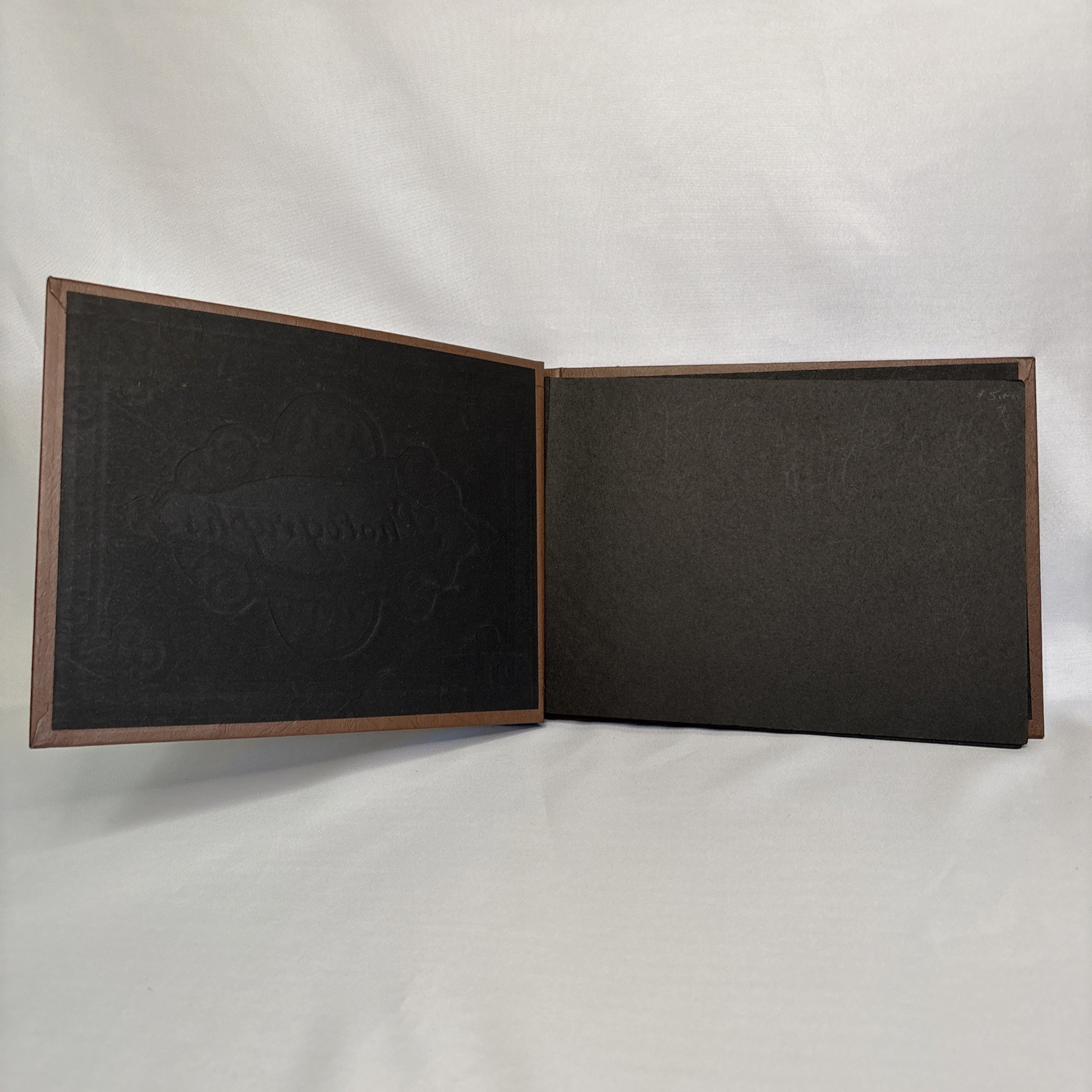 Vintage Handmade Photo Album Brown Leather Carved Cover 15 Black Photo Pages
