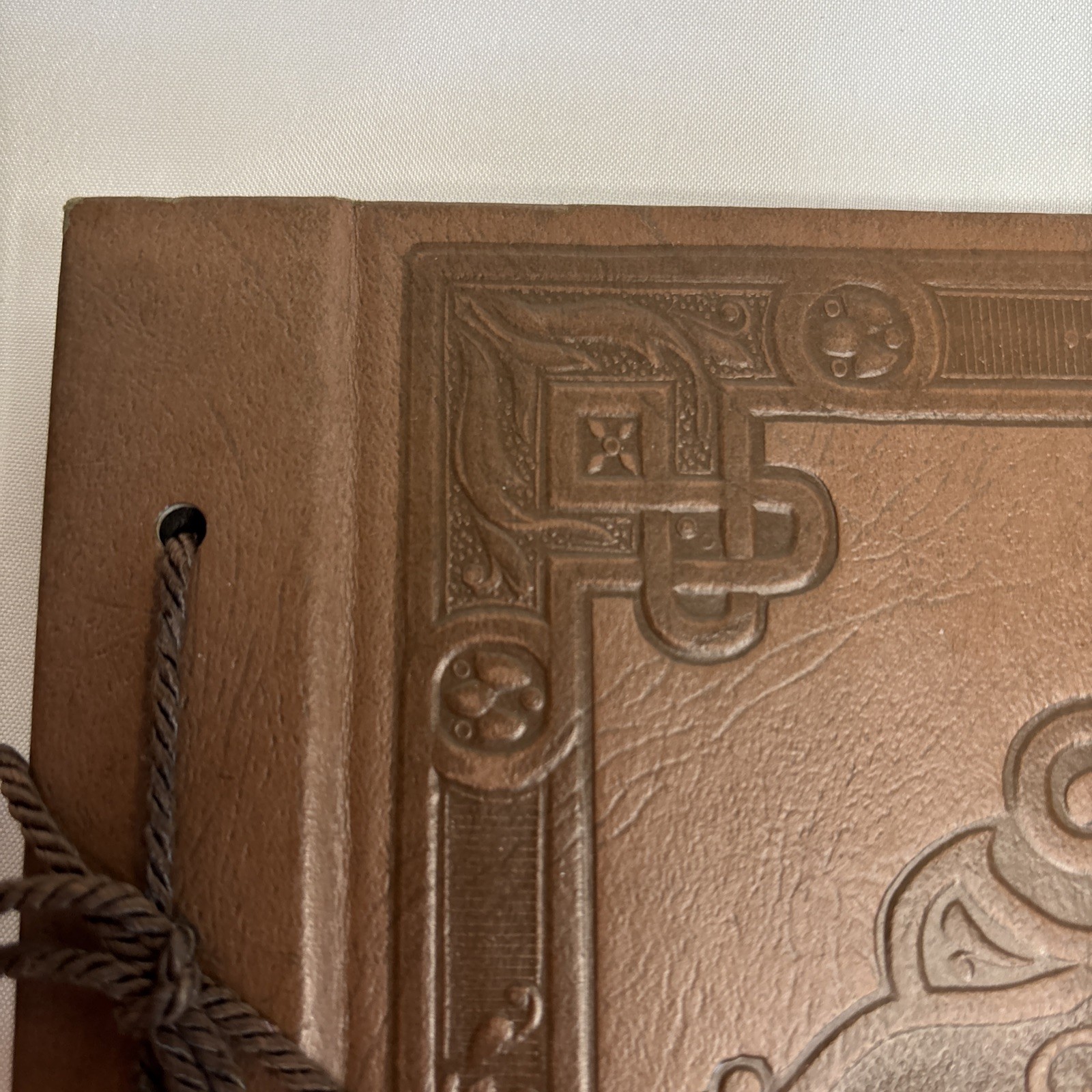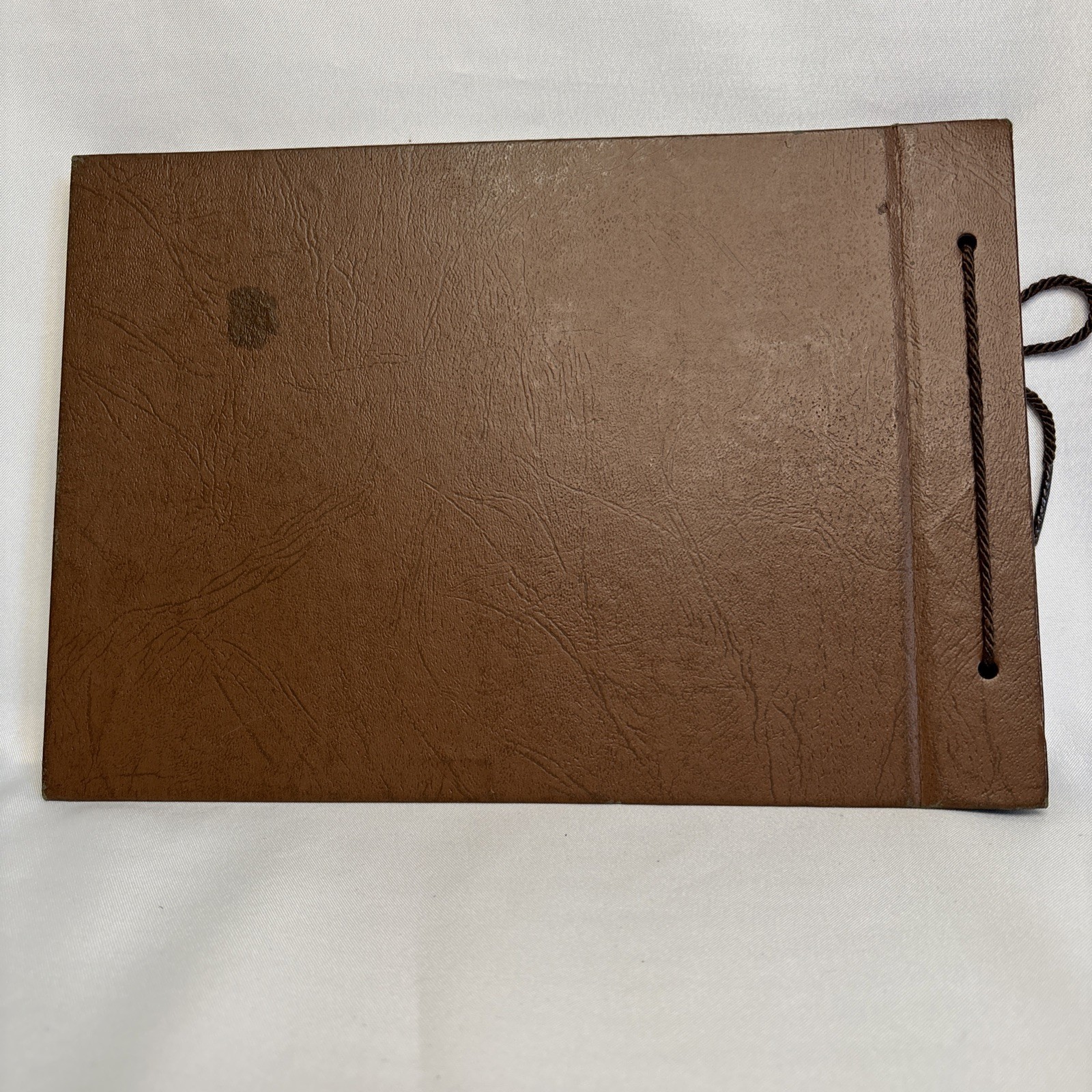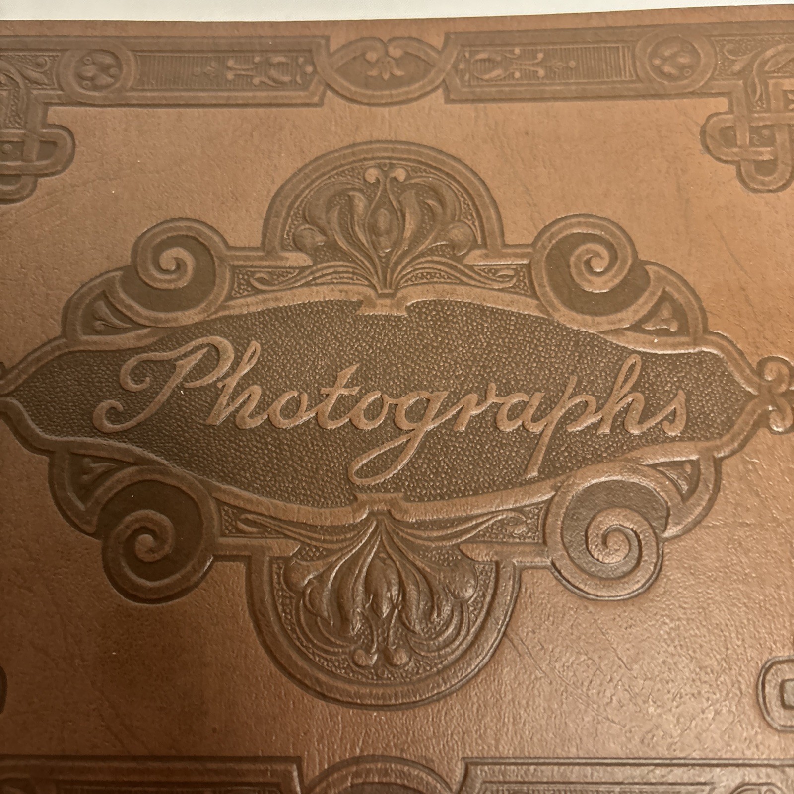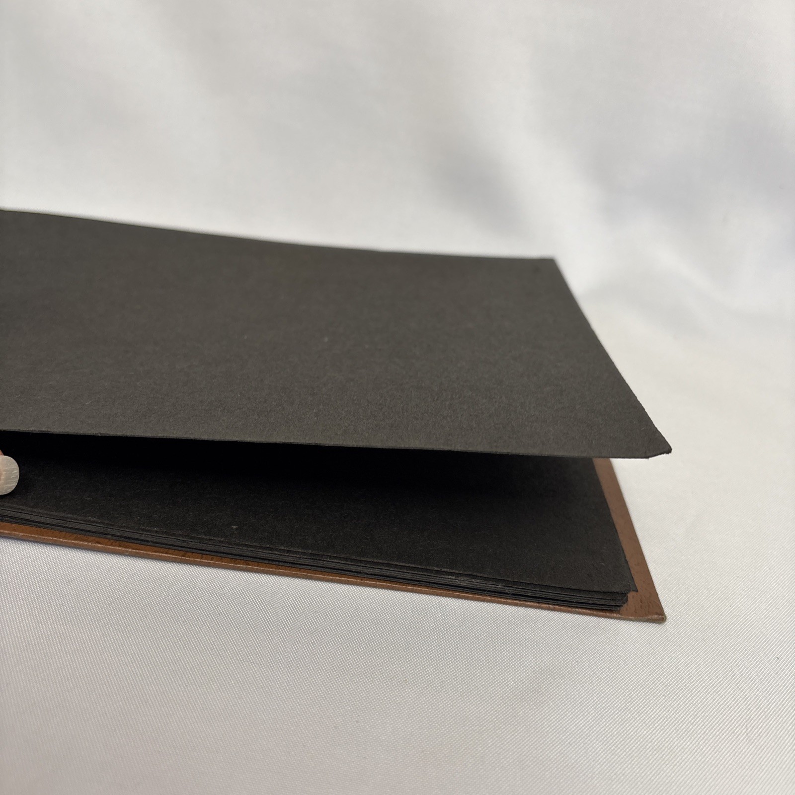 Vintage Handmade Photo Album Brown Leather Carved Cover 15 Black Photo Pages