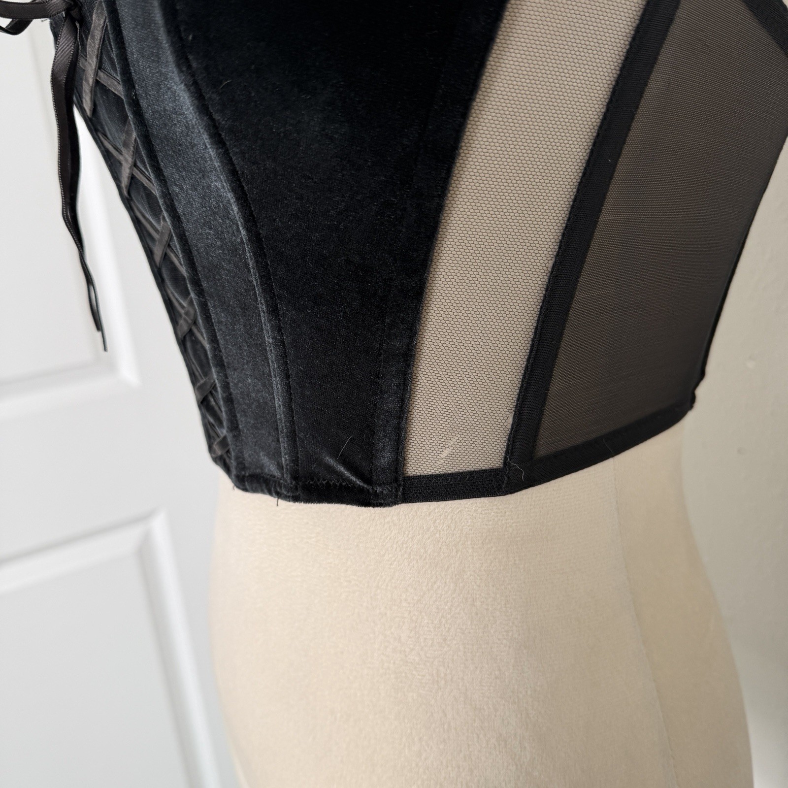 Victoria's Secret Dream Angels Velvet Lace Corset Bra Top Black Goth Witch XS