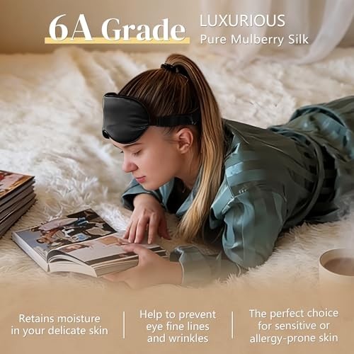 Adjustable 22 Momme 100 Pure Mulberry Silk Sleep Mask, 3D Contoured Eye Mask, S