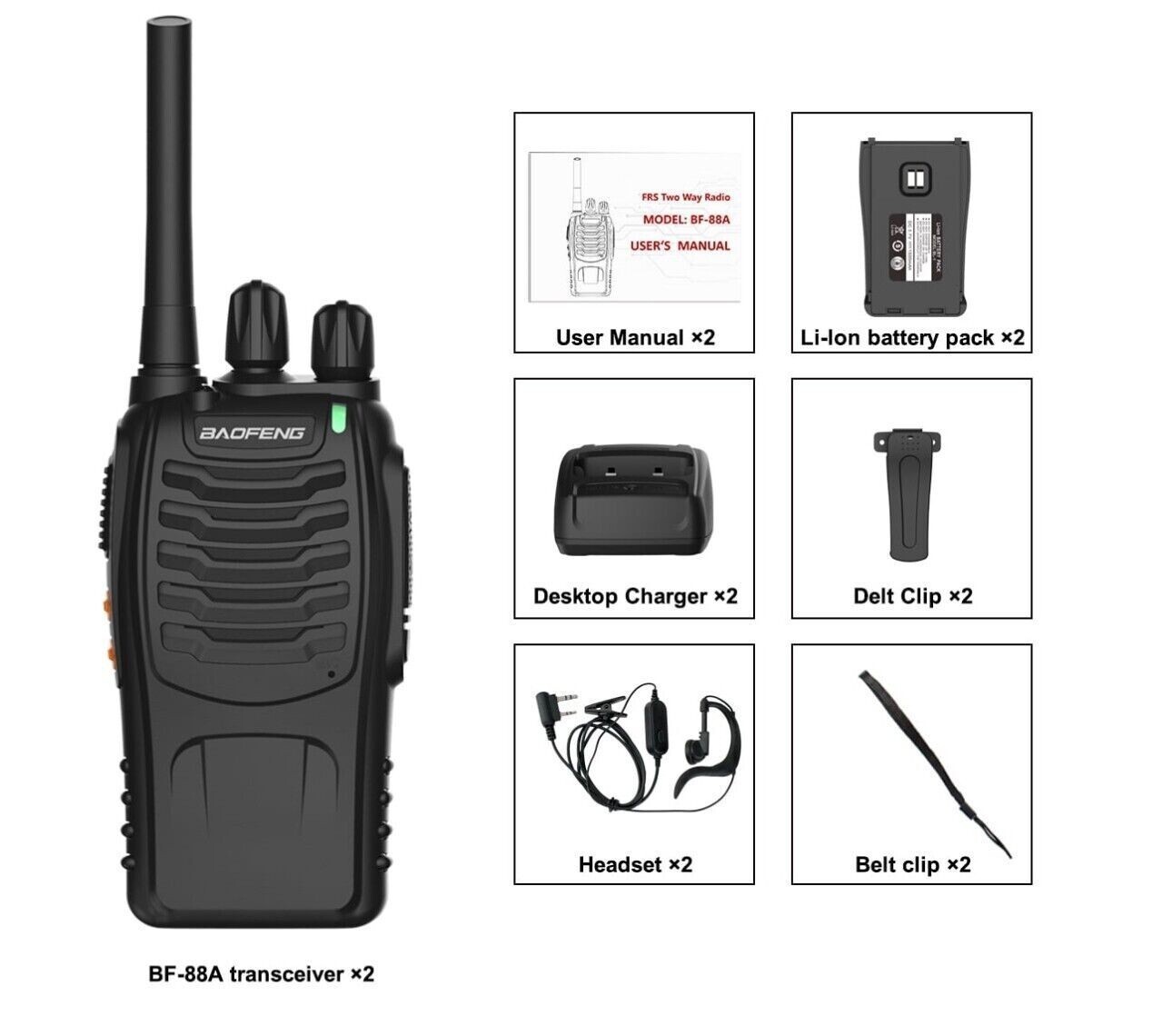 как выглядит 4 Pack Baofeng BF-88A Walkie Talkie 2 Two Way Radio Long Range Handheld FRS US фото