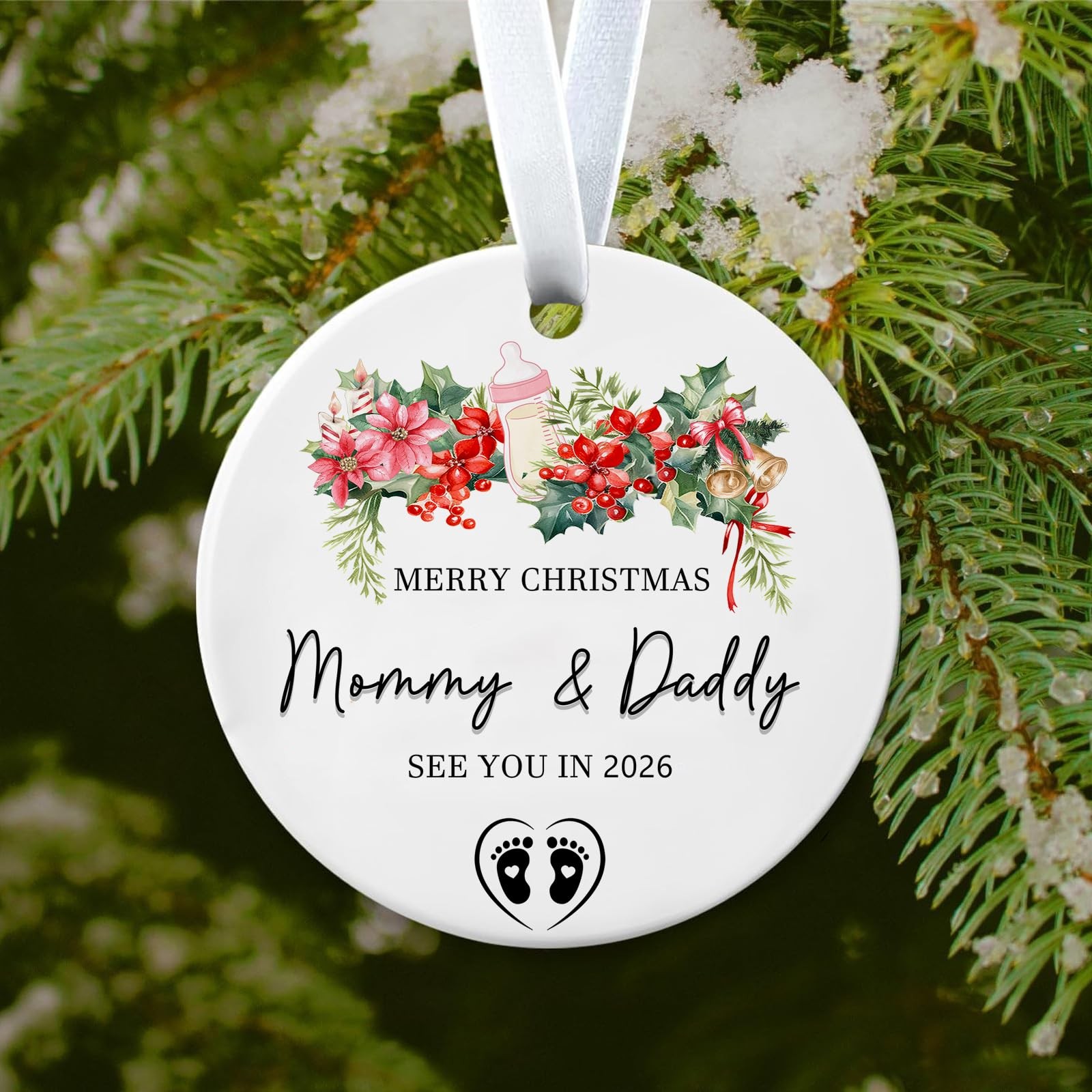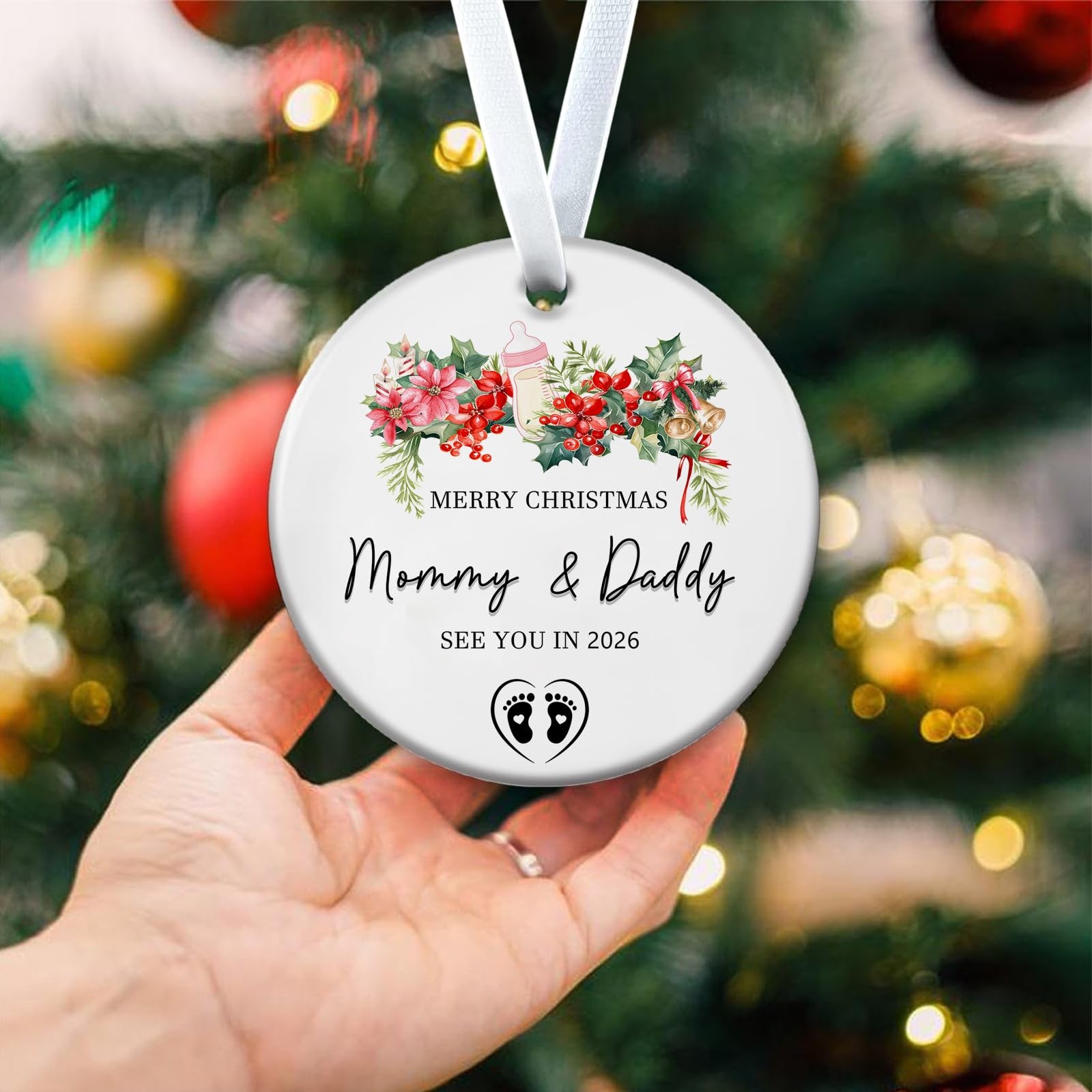 как выглядит Christmas Ornaments Pregnant Multicolor-merry Mommy daddy фото