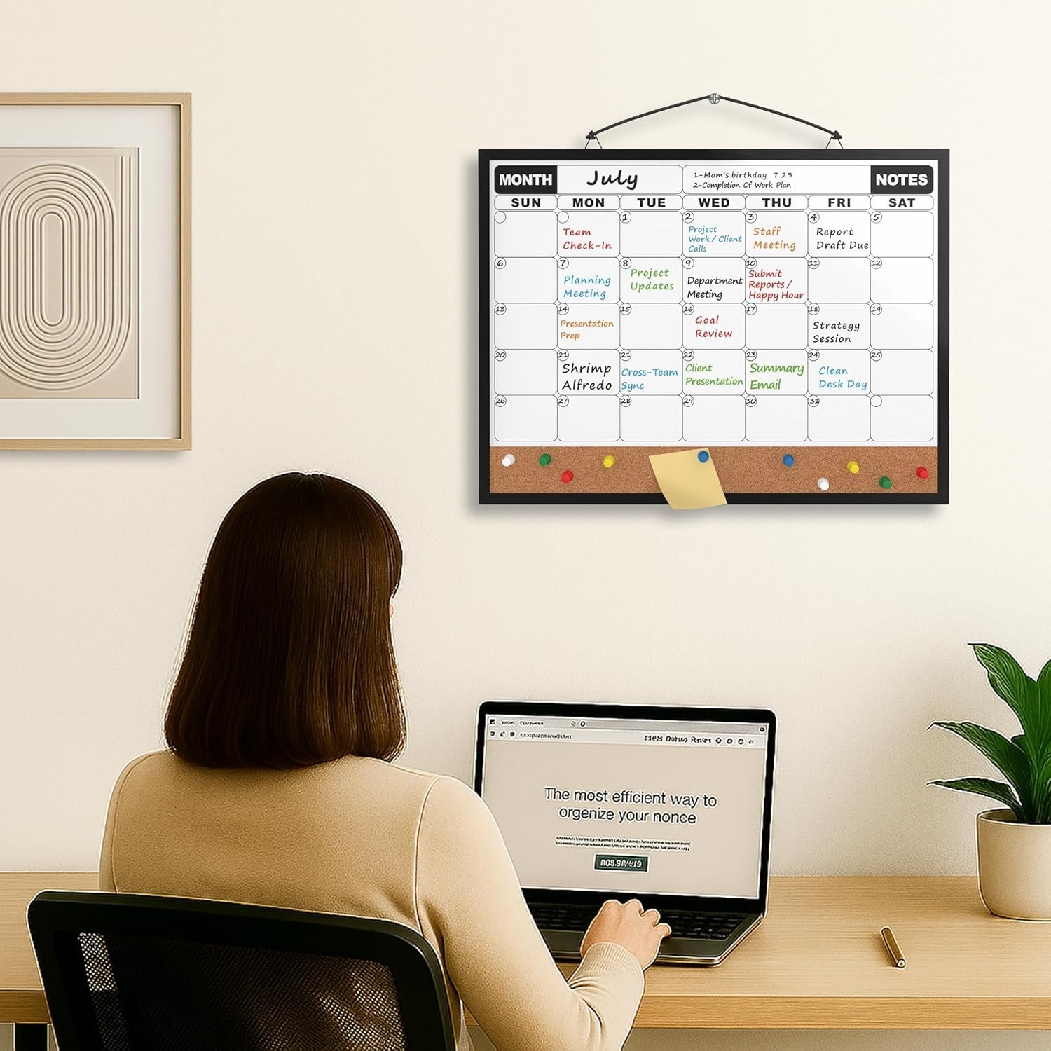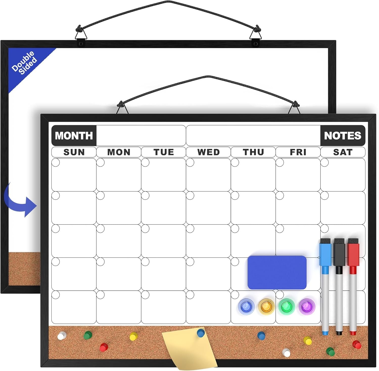 как выглядит Monthly Calendar Dry Erase Board 16x12 Inch, Double-Sided Whiteboard and Cork... фото