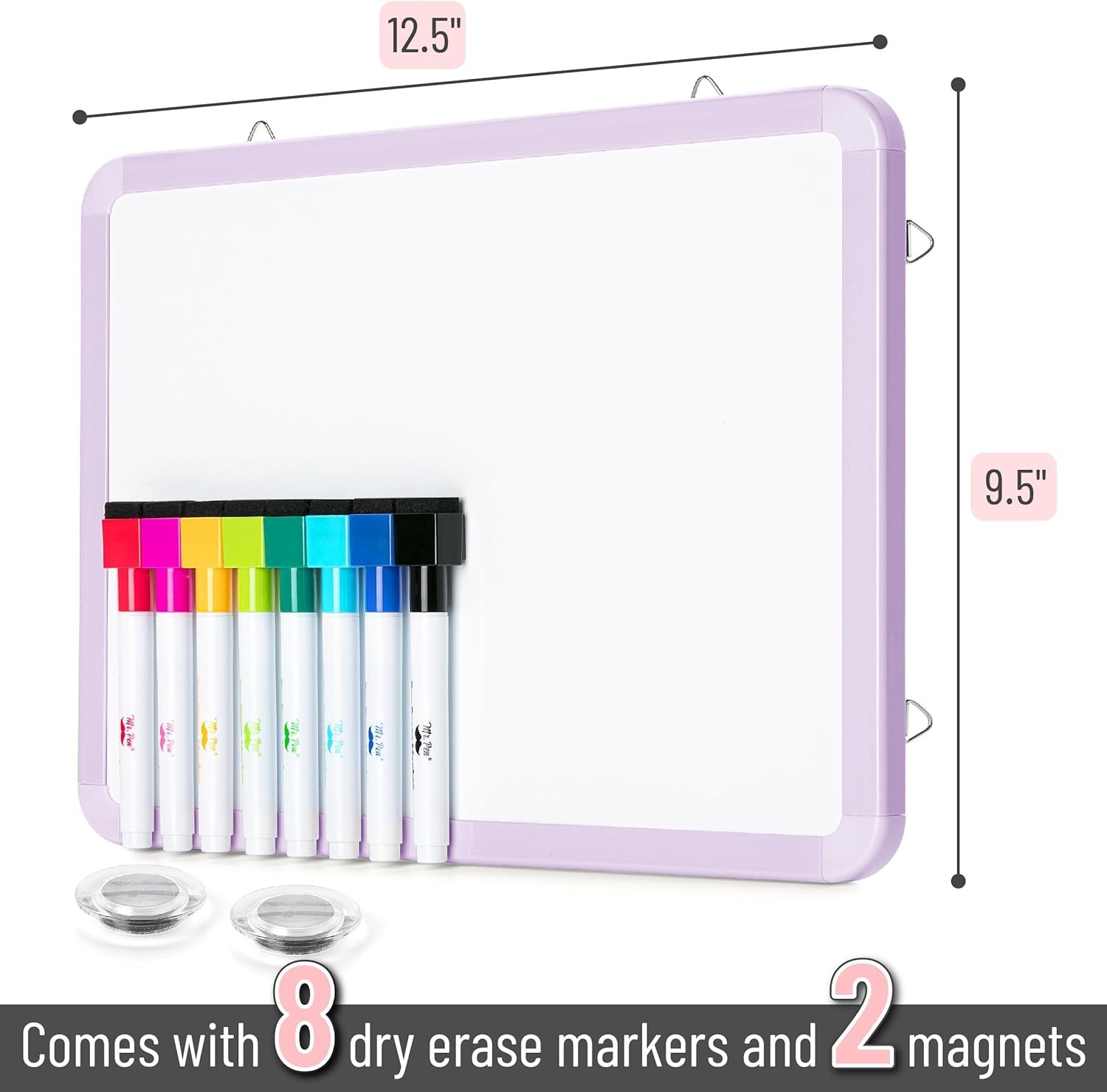 Dry Erase Board, 12.5 x 9.5 with 8 Dry Erase Markers and 2 Board Magnets, W...