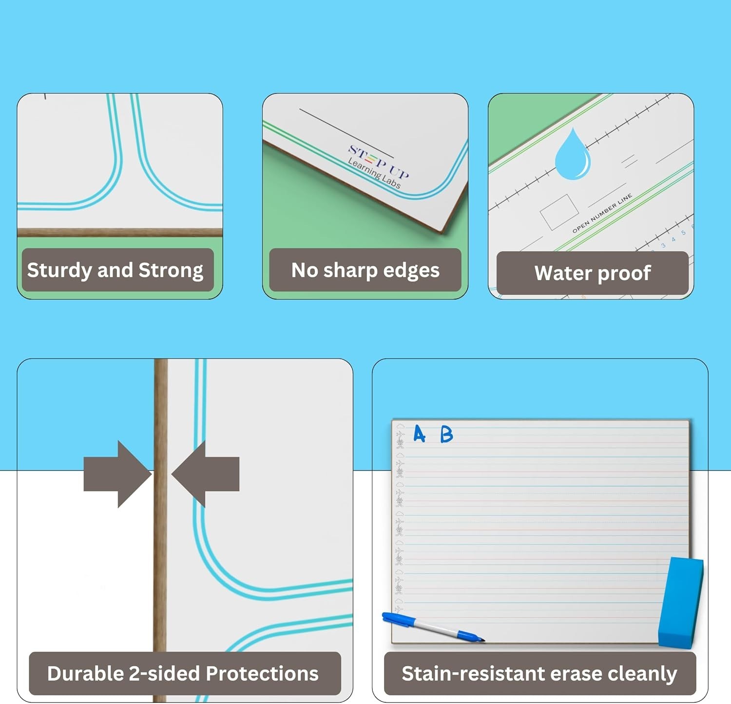 STEPUP Double Sided Whiteboard Lined Dry Erase Boards for Kids Ruled Writing ...