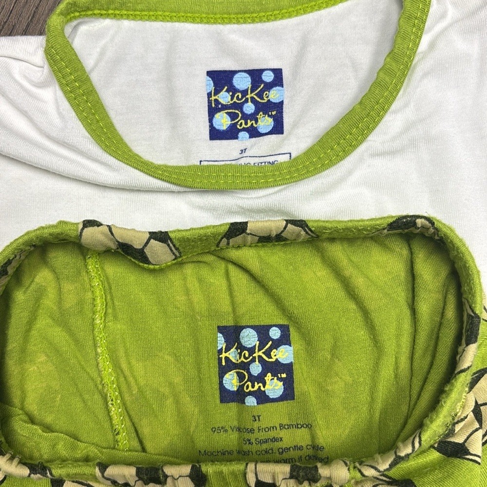 Kickee Pants green white 3T Goal Soccer themed SSS and shorts. Soooft