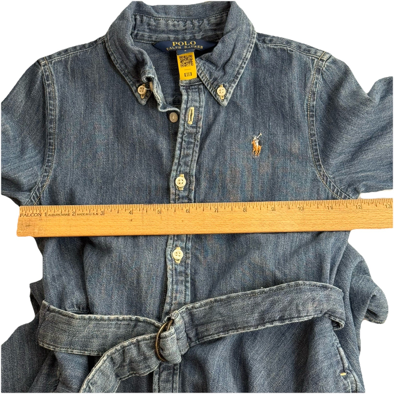 как выглядит Polo Ralph Lauren Chambray Long Sleeve Dress Girl 6 Blue Collar Button Up Belt фото