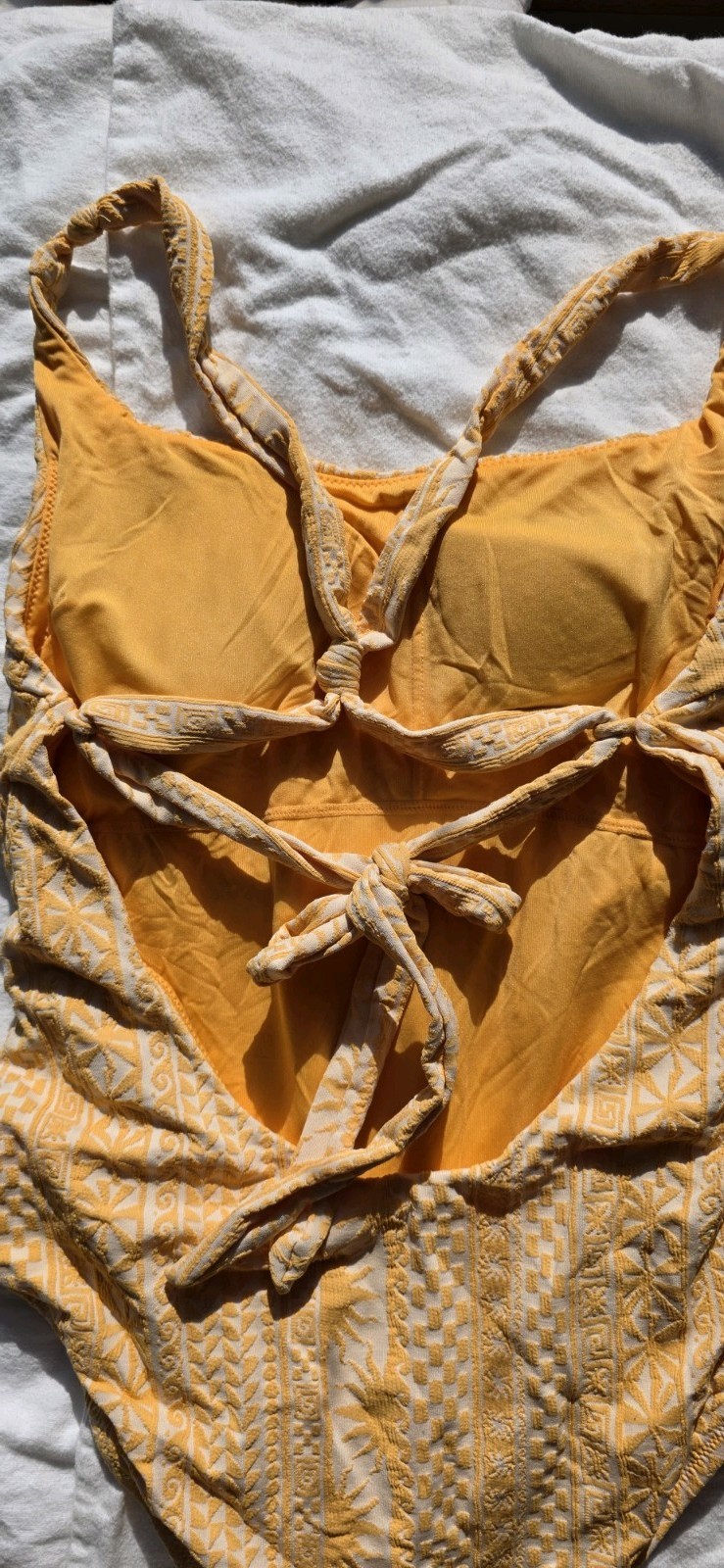как выглядит Rip Curl Yellow One Piece Swimsuit XL Twist Strap Removable Pads Cheeky Women фото