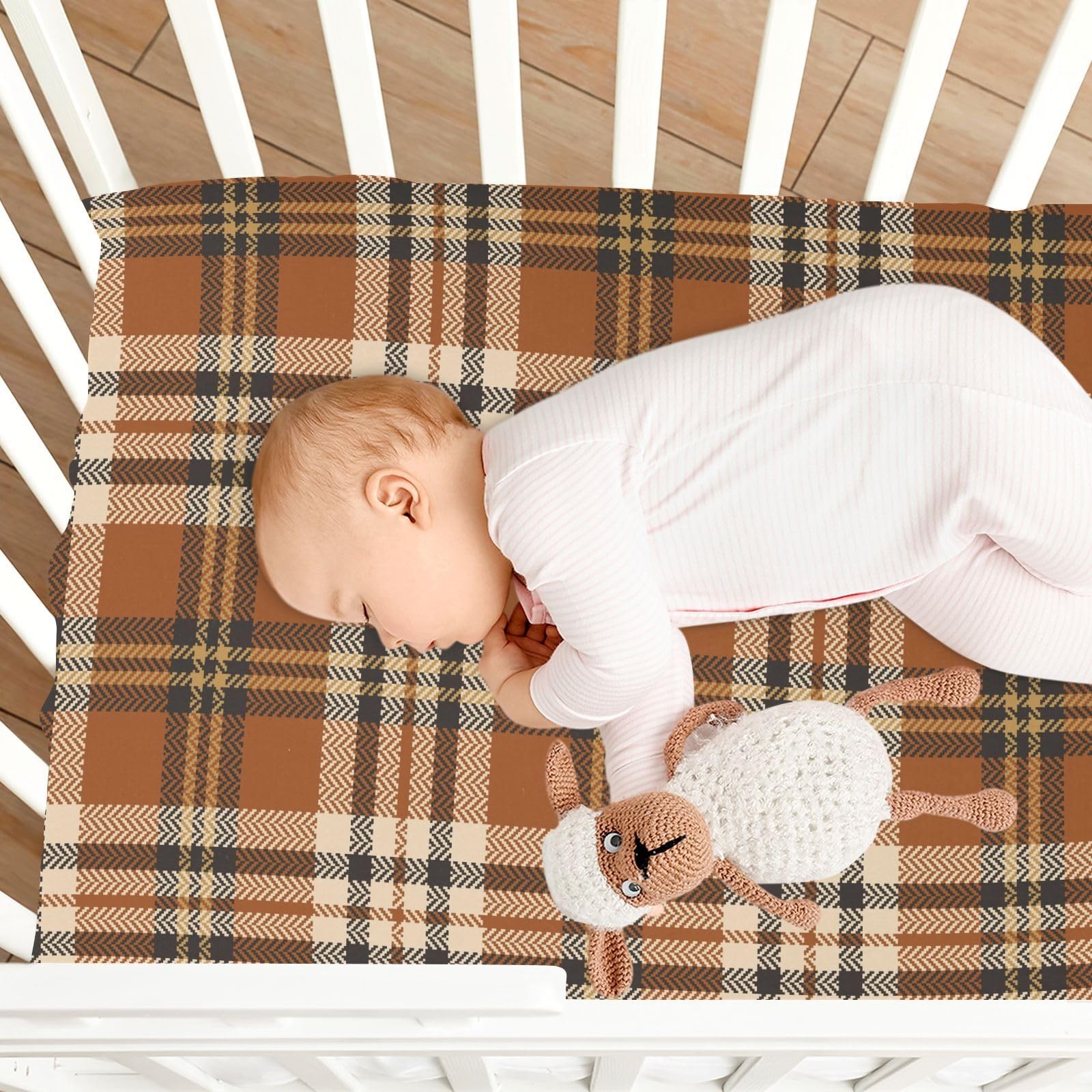 Fall Brown Beige Plaid Fitted Crib Sheet Stretchy Mattress Cover Fits 52x28 In