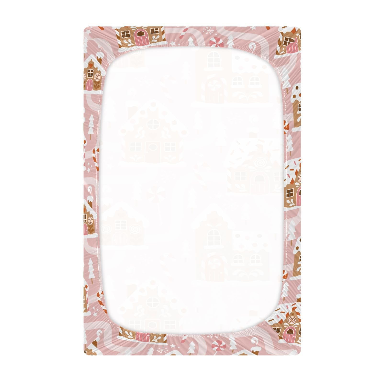 как выглядит Gingerbread House Pink Fitted Crib Sheet Stretchy Mattress Cover Fits 52x28 In фото