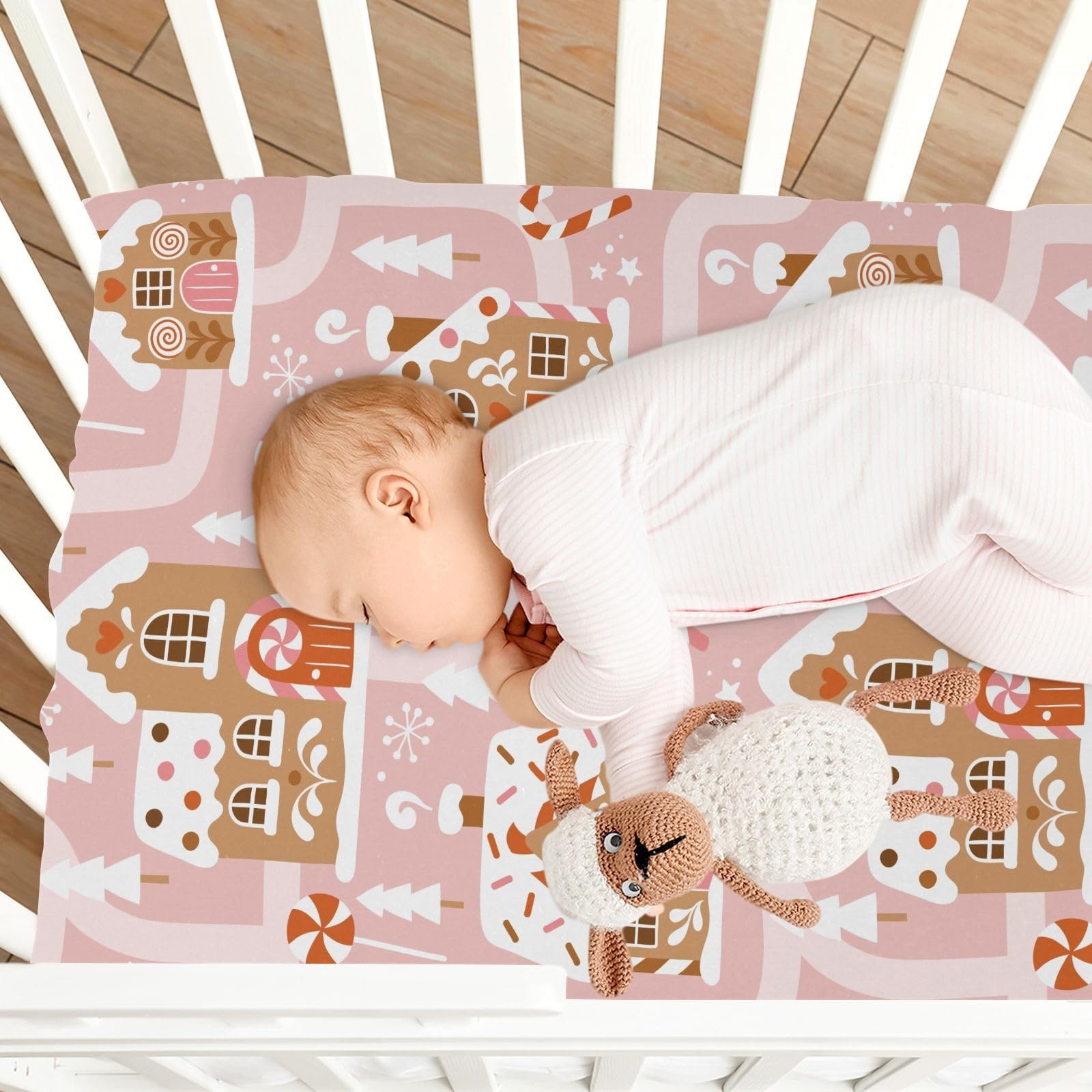 Gingerbread House Pink Fitted Crib Sheet Stretchy Mattress Cover Fits 52x28 In