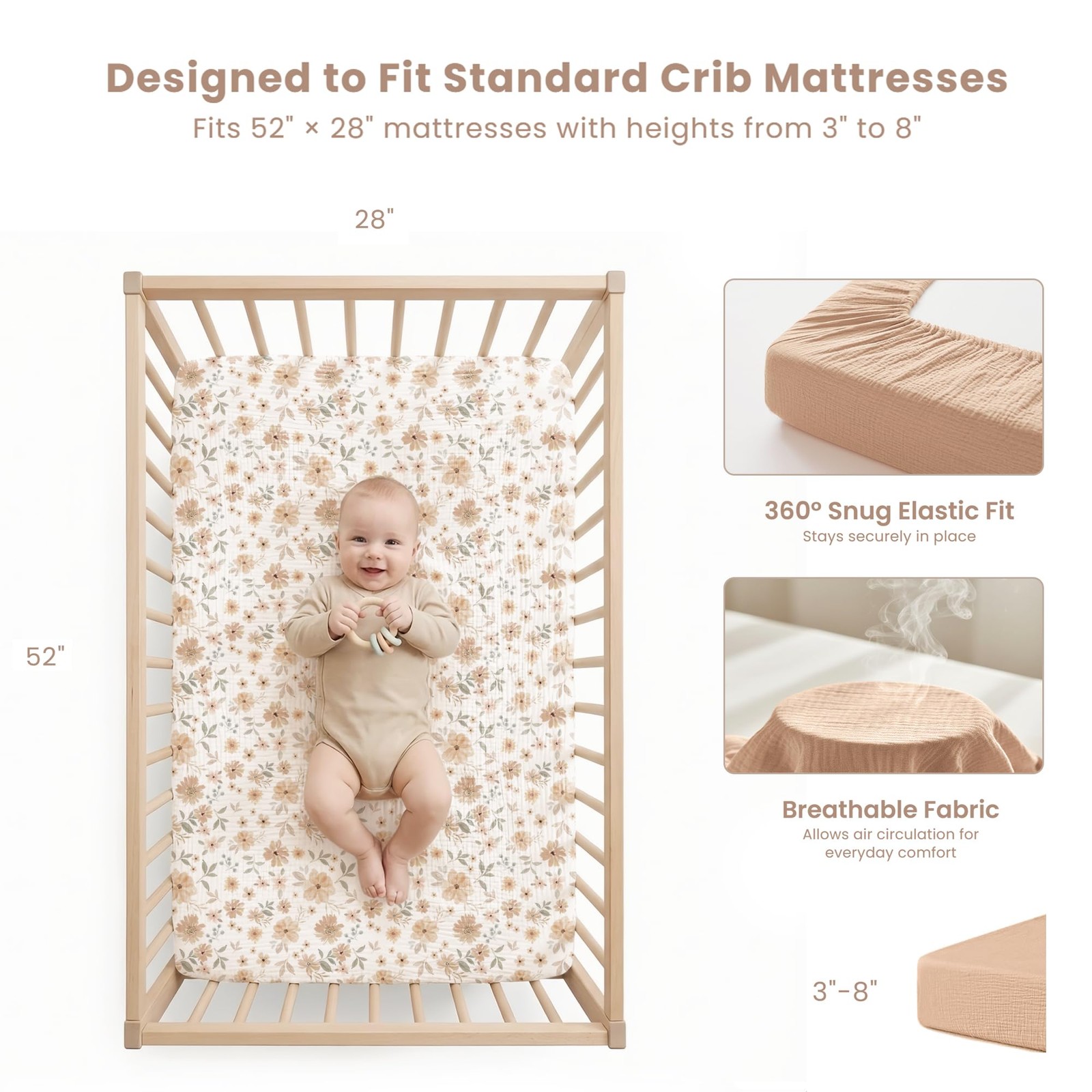 Muslin Crib Sheets 2 PCS 100 Cotton Standard Mattress 28x52 Toffee Flourish