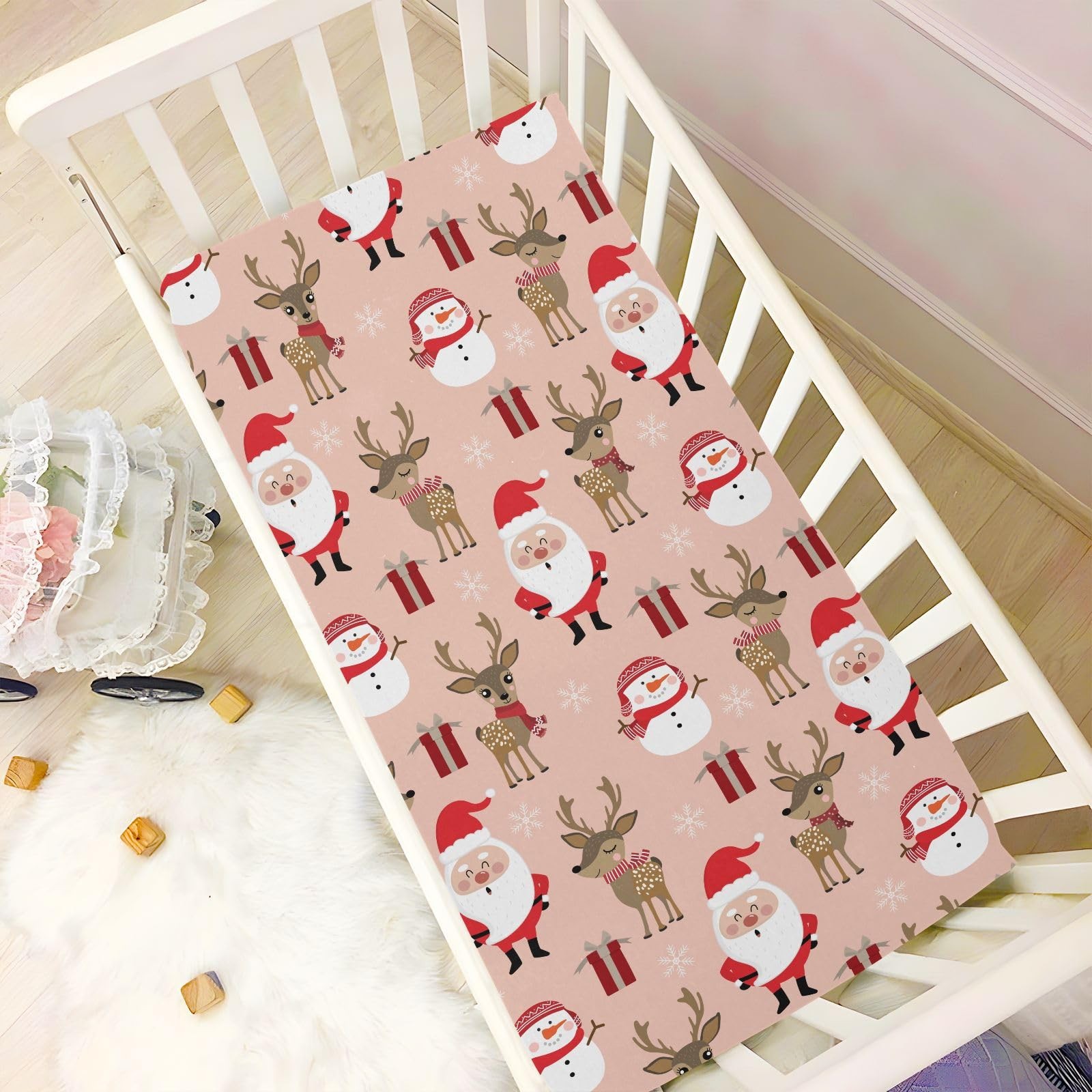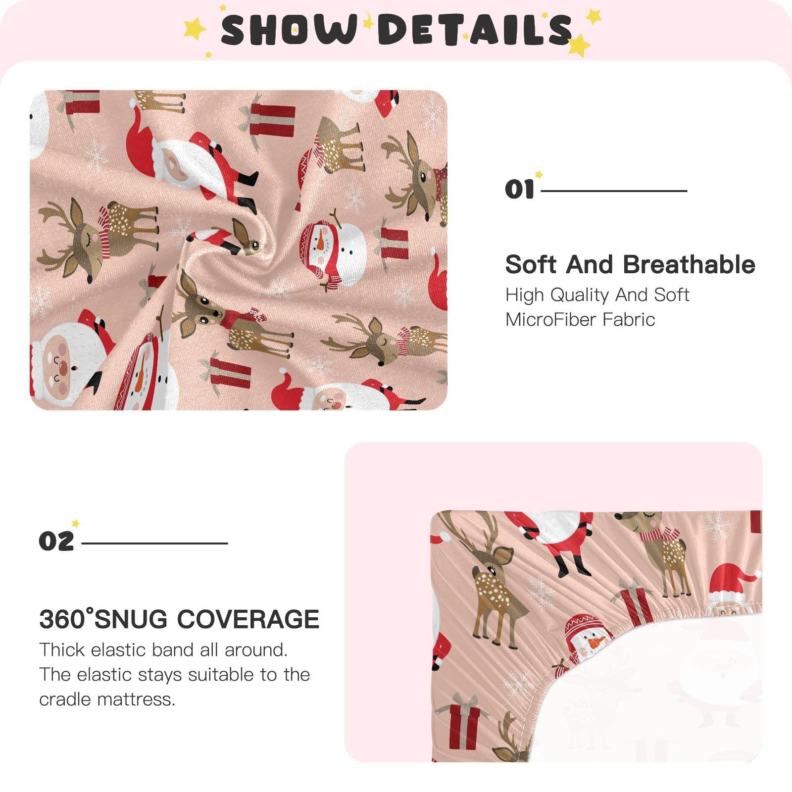Christmas Crib Sheets Microfiber Fitted Playard Mattress Sheet Fits 27x39 Inch