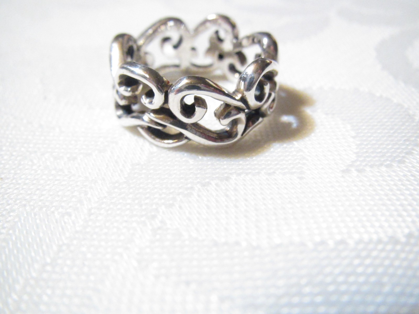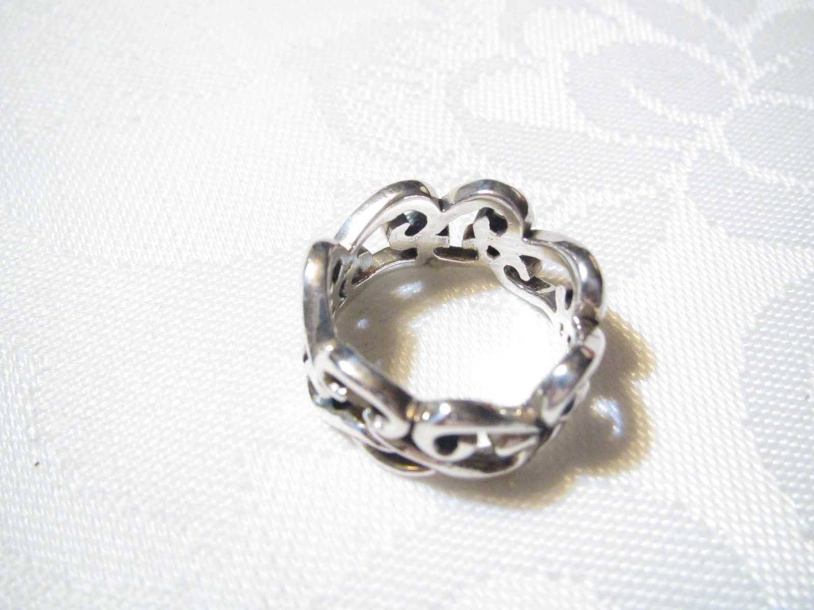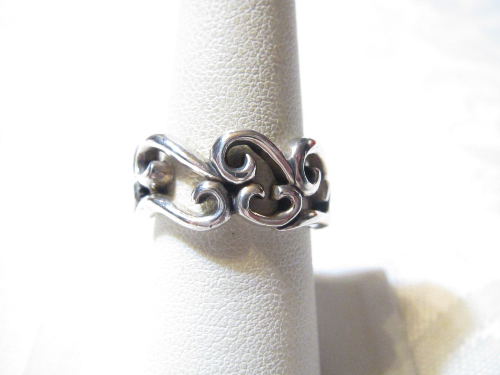 как выглядит BEAUTIFUL RETRO STERLING SILVER WIDE BAND SCALLOPED DESIGN RING - SZ 8 фото