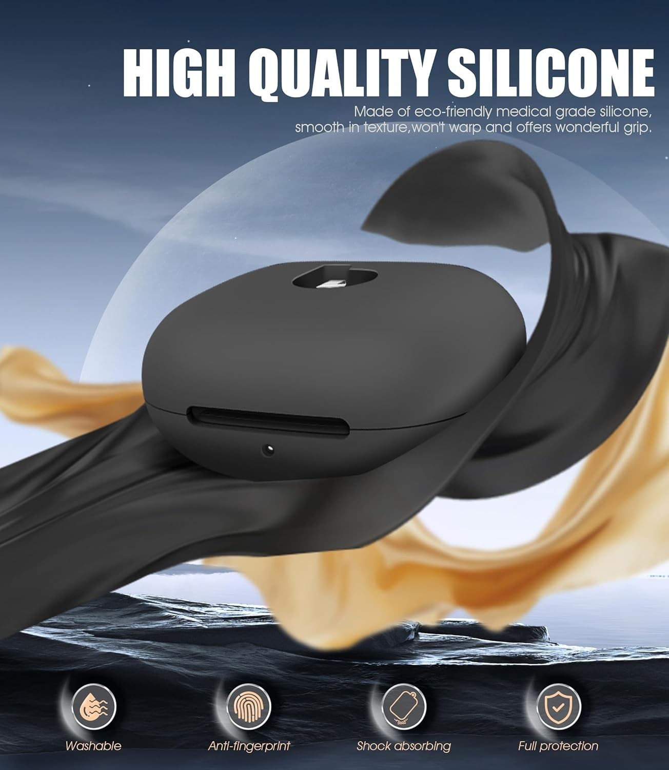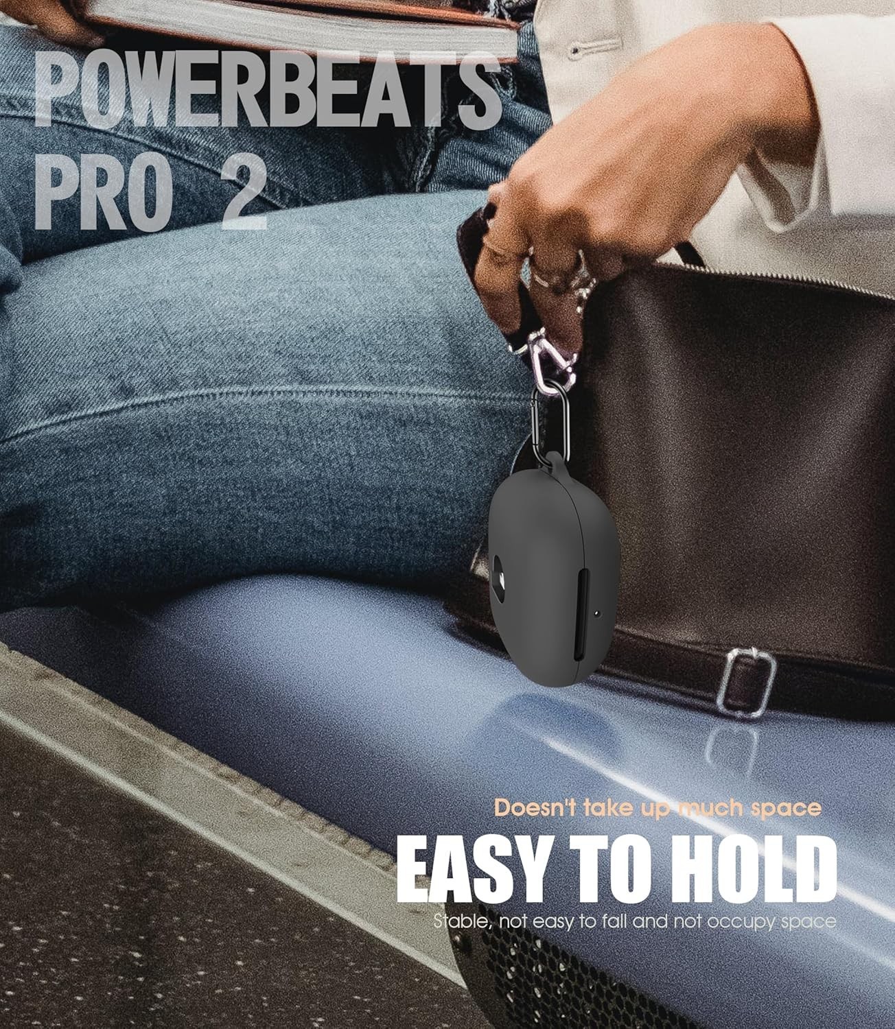 Jet Black Silicone Case for Beats Powerbeats Pro 2 with Cleaning Kit Carabiner