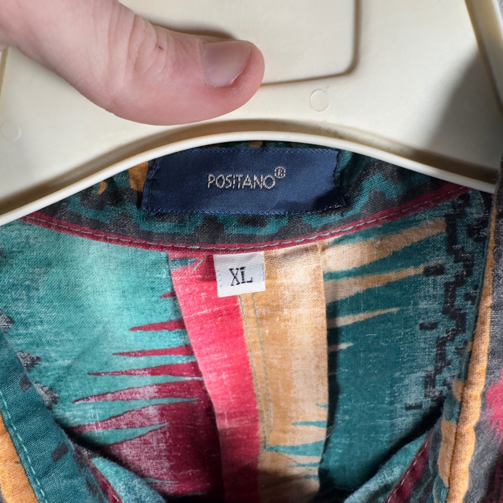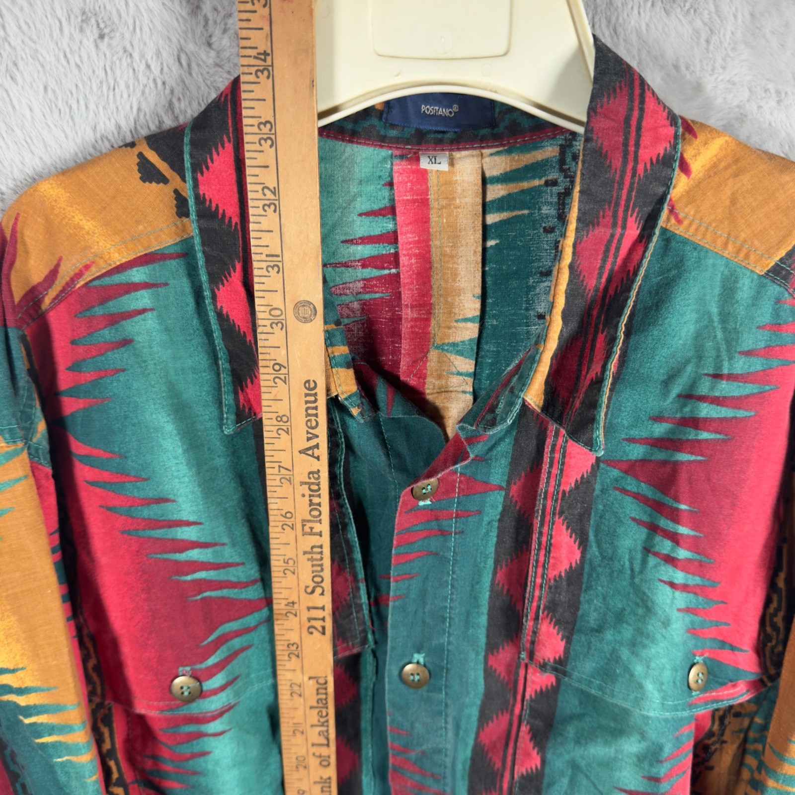 Vintage Positano Mens XL Southwestern Geometric Button Down Shirt Multi Color 90