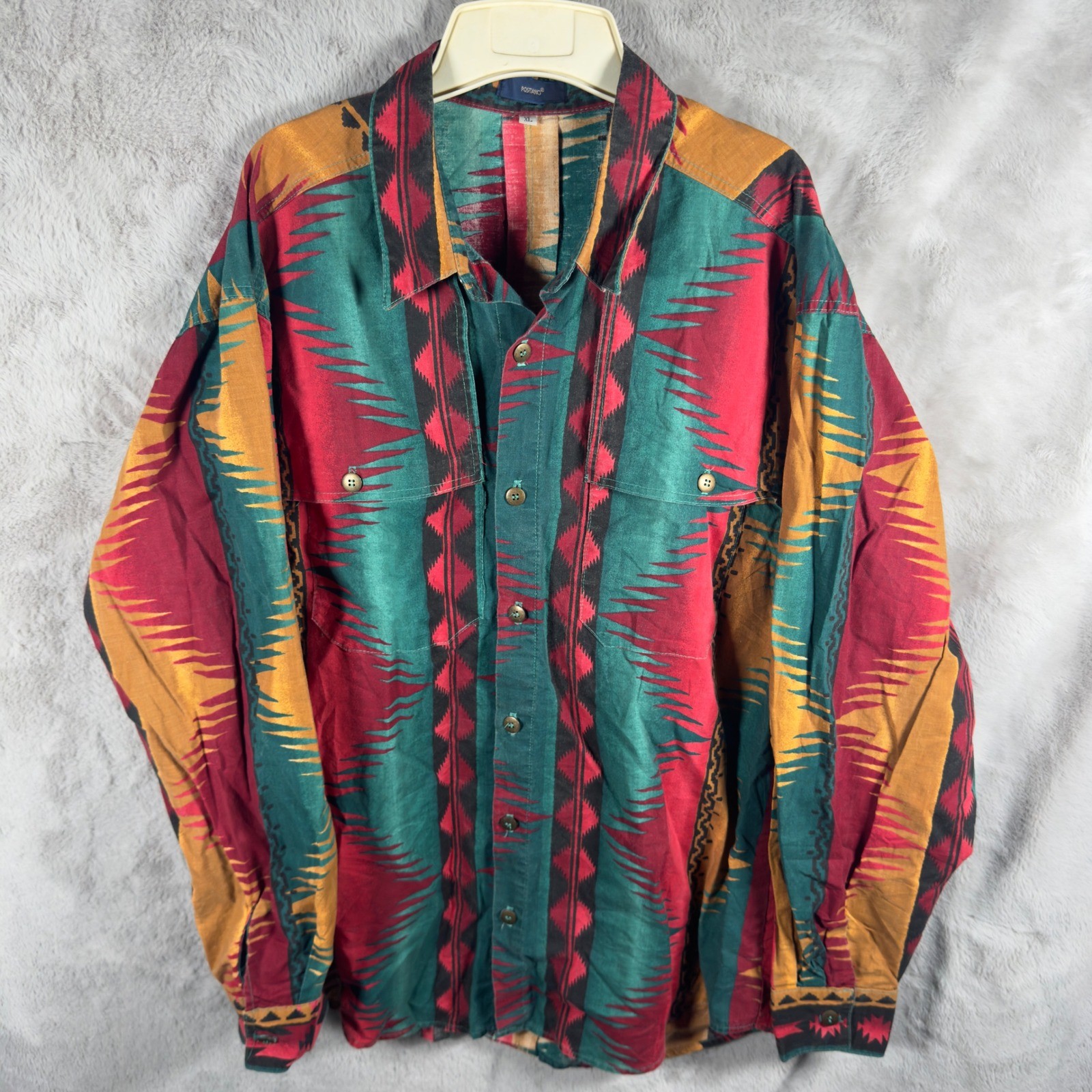 как выглядит Vintage Positano Mens XL Southwestern Geometric Button Down Shirt Multi Color 90 фото