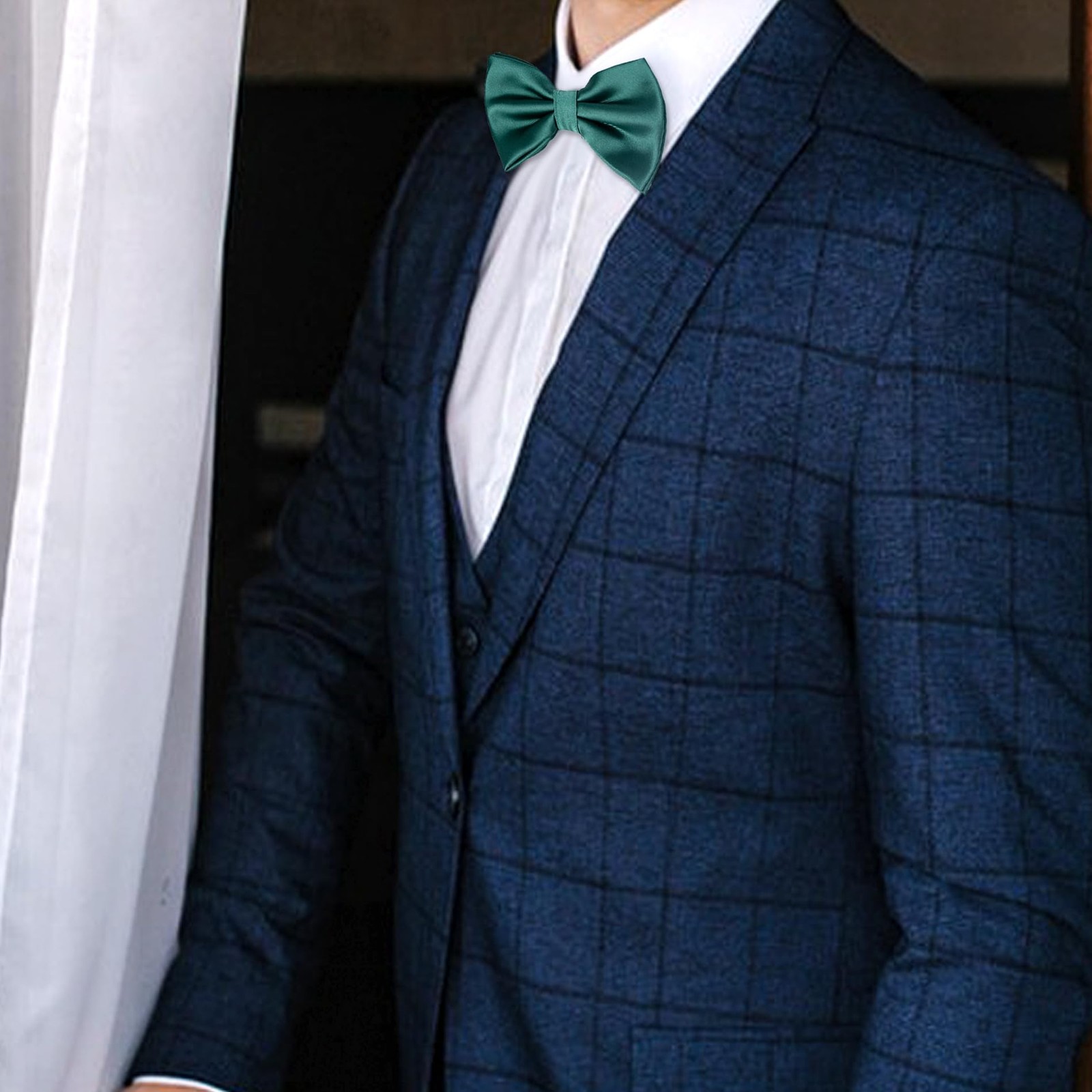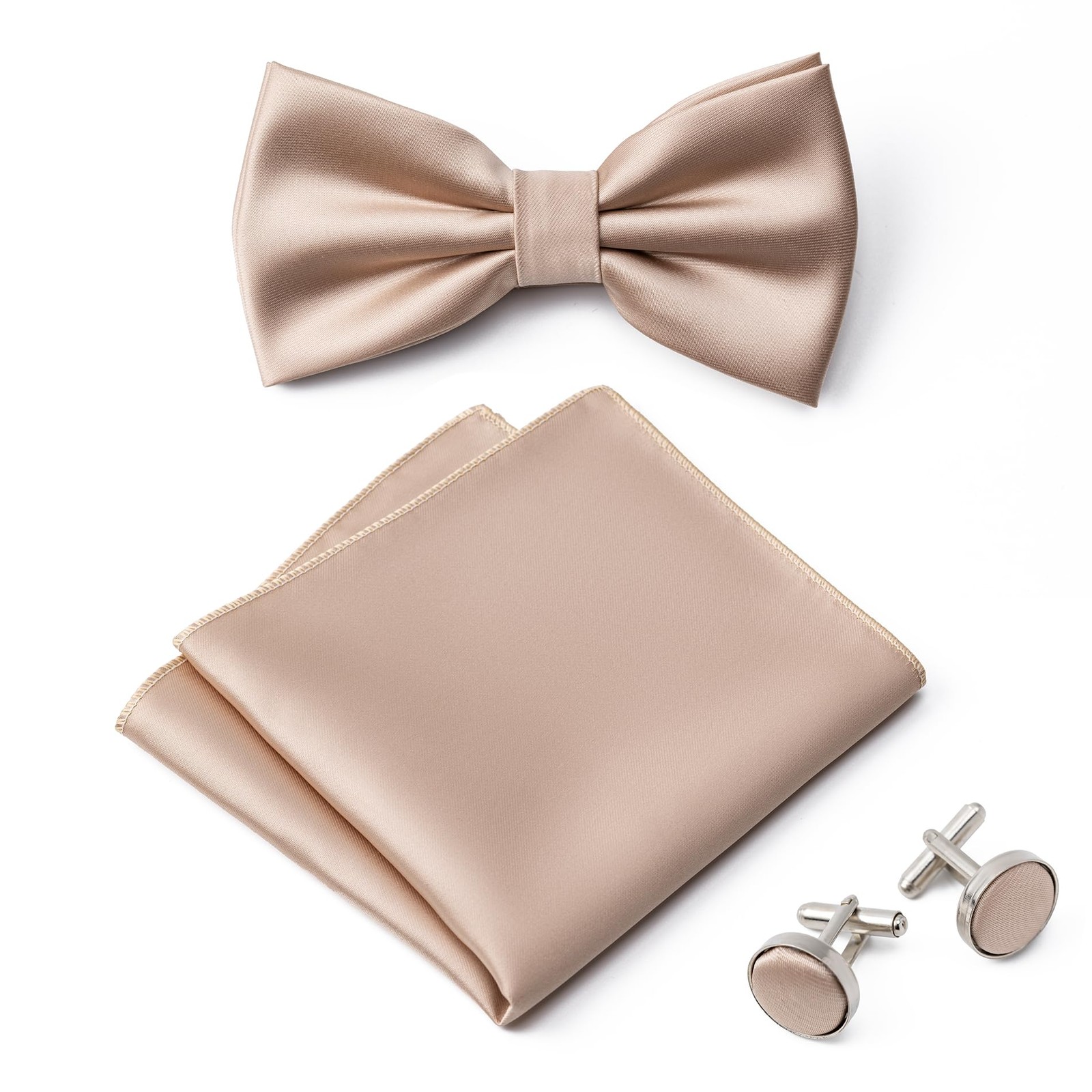Men's Solid Double Fold Pre-Tied Bow Tie Pocket Square Cufflinks Set