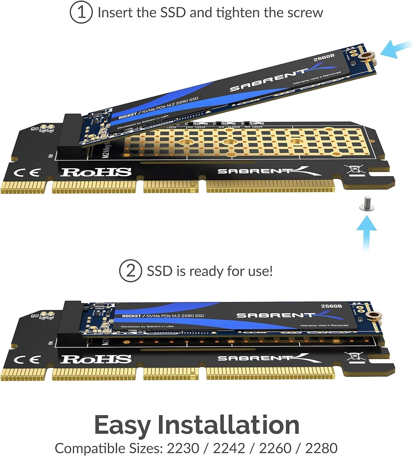 M.2 NVMe to PCIe Adapter Card 4 Ports with Aluminum Heatsink - Easy Install 2...