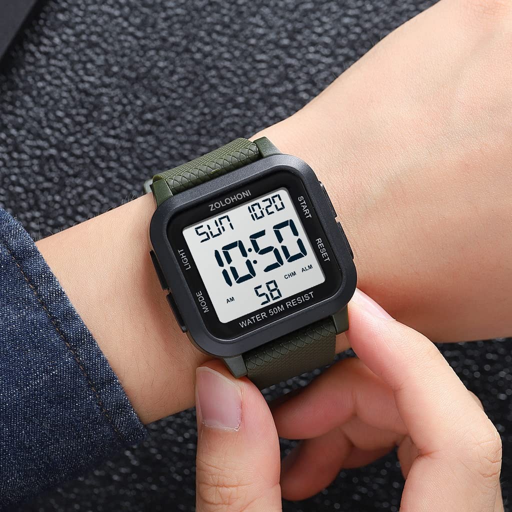 Square Men's Digital Watch Big Numbers Dial Large Face Waterproof LED Watches