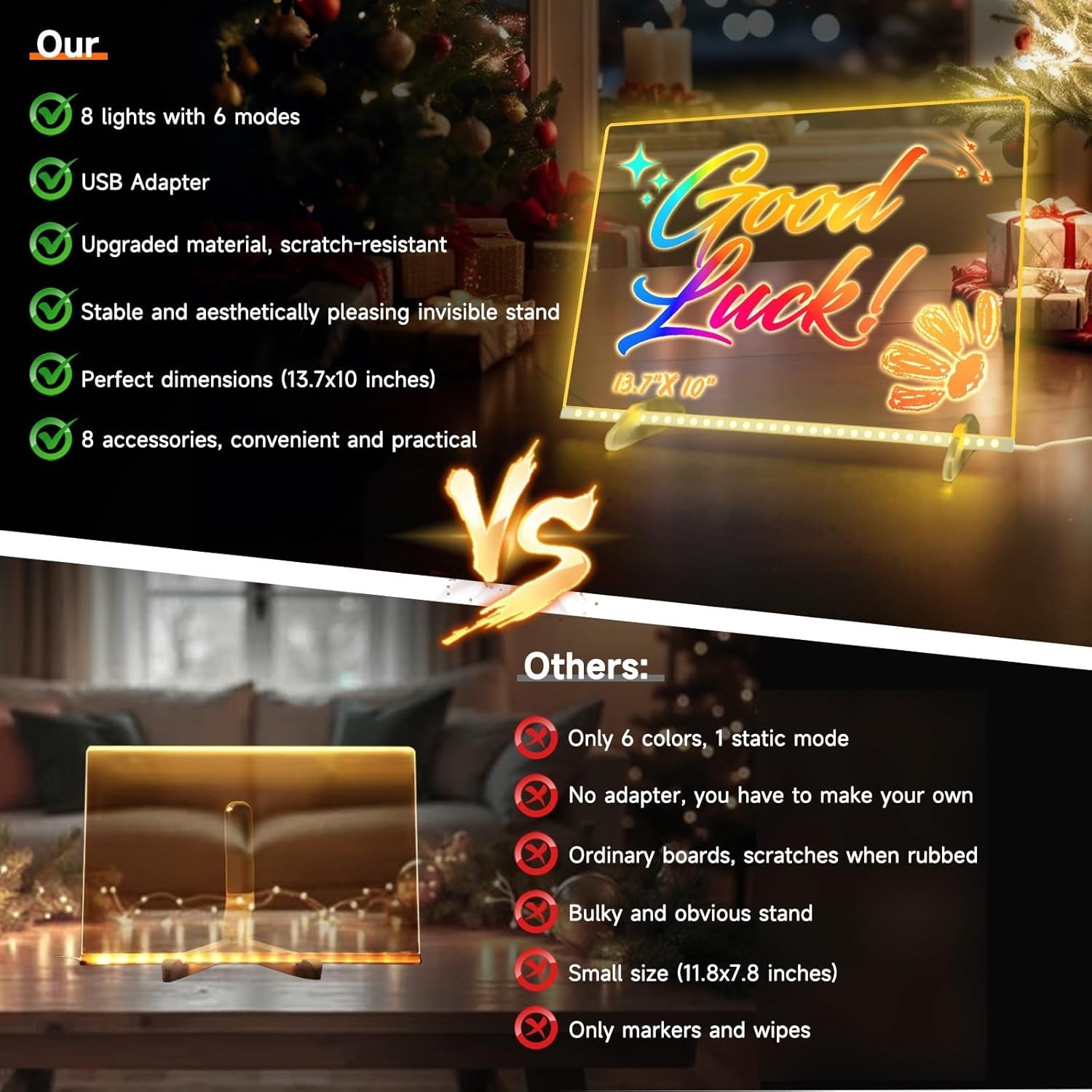16'' Led Drawing Board for Kids with 8 Colors 6 Modes, Led Note Board with Co...