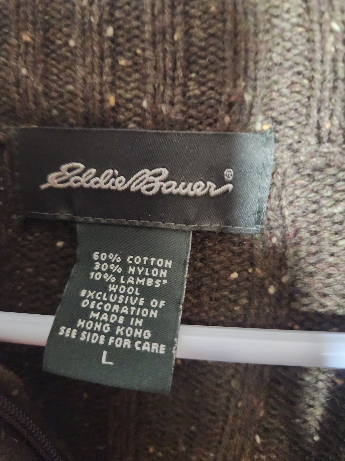 Vintage Eddie Bauer Men s Brown Lambswool Mix Quarter Zip Sweater Preppy Fall LG