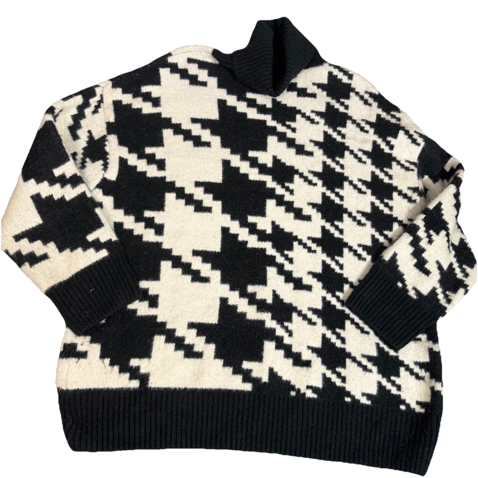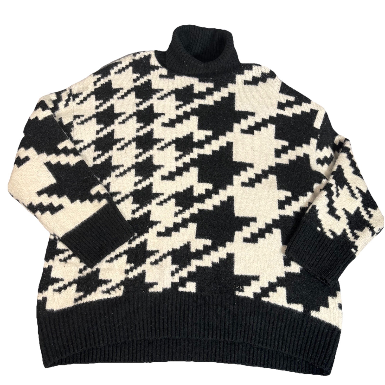 H M Womens Turtleneck Houndstooth Sweater Black White Large Wool Jacquard