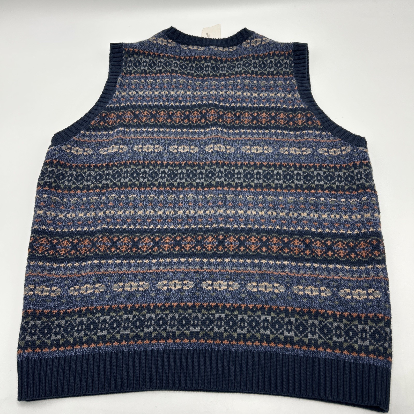 Vintage LL Bean Men s Sweater Knit Vest Pastel Fair Isle Cotton Size XL